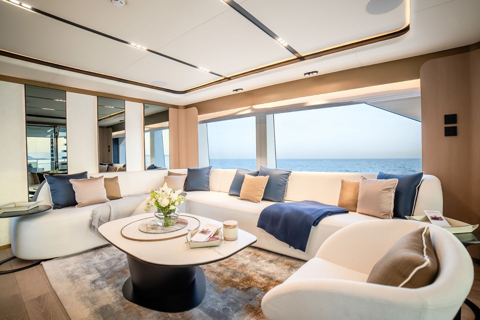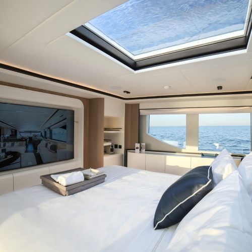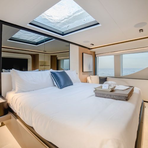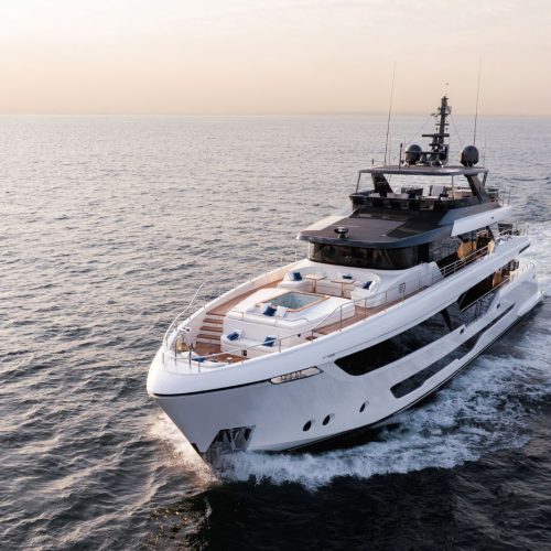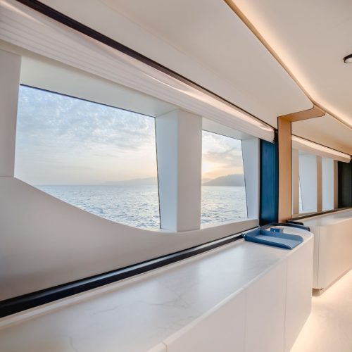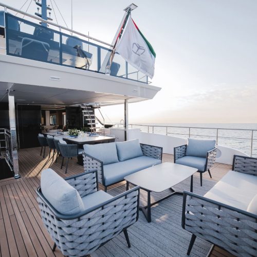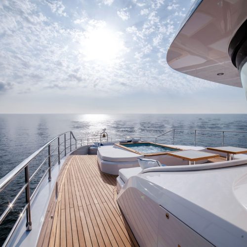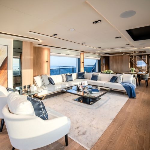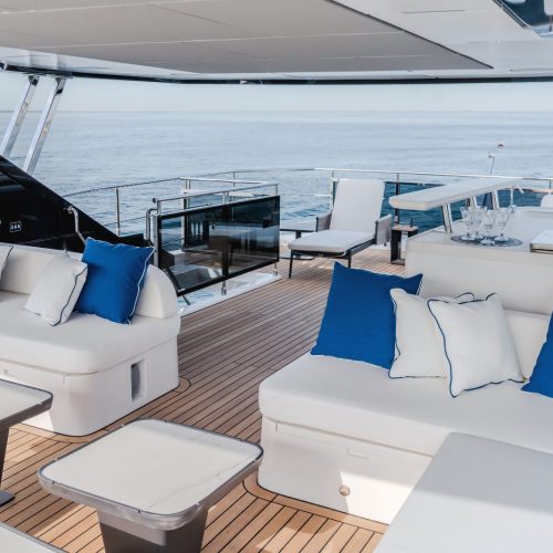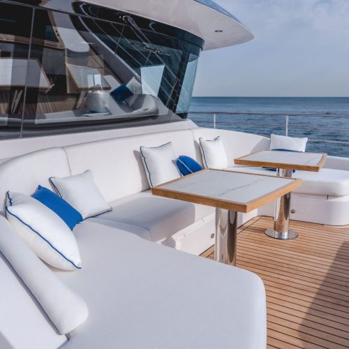 Designed to host up to 12 guests with accommodation for six crew, the Majesty 112 offers generous deck areas and fluid indoor–outdoor living. Multiple lounging and dining zones support relaxed entertaining, while the panoramic salon and sophisticated interior finishes create an atmosphere that is both welcoming and impressively refined.