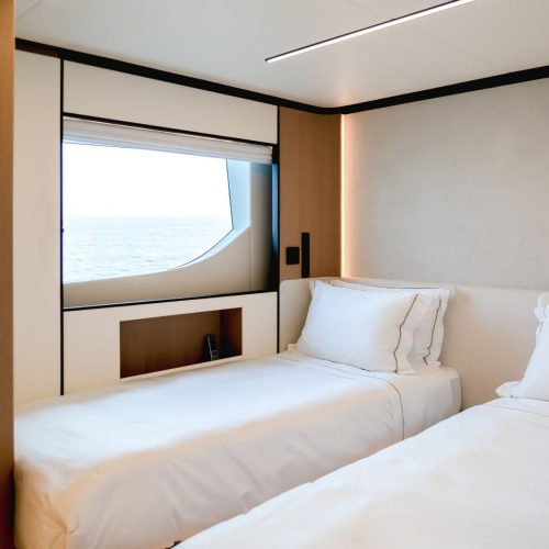 A semi-displacement hull underpins the Majesty 112’s smooth and efficient performance, supported by substantial fuel capacity for extended cruising. Whether underway or at anchor, she delivers stability, comfort and confidence, making her equally well suited to private ownership or charter use across a wide range of cruising itineraries.