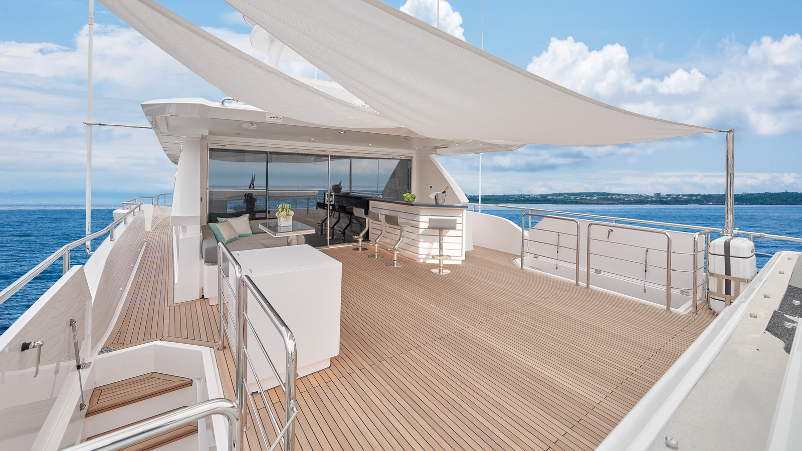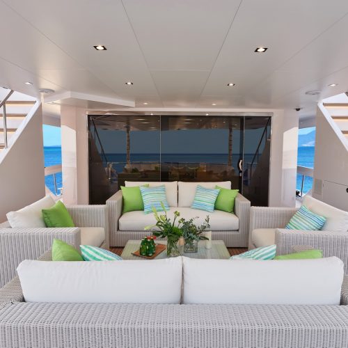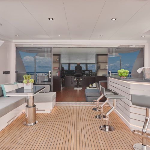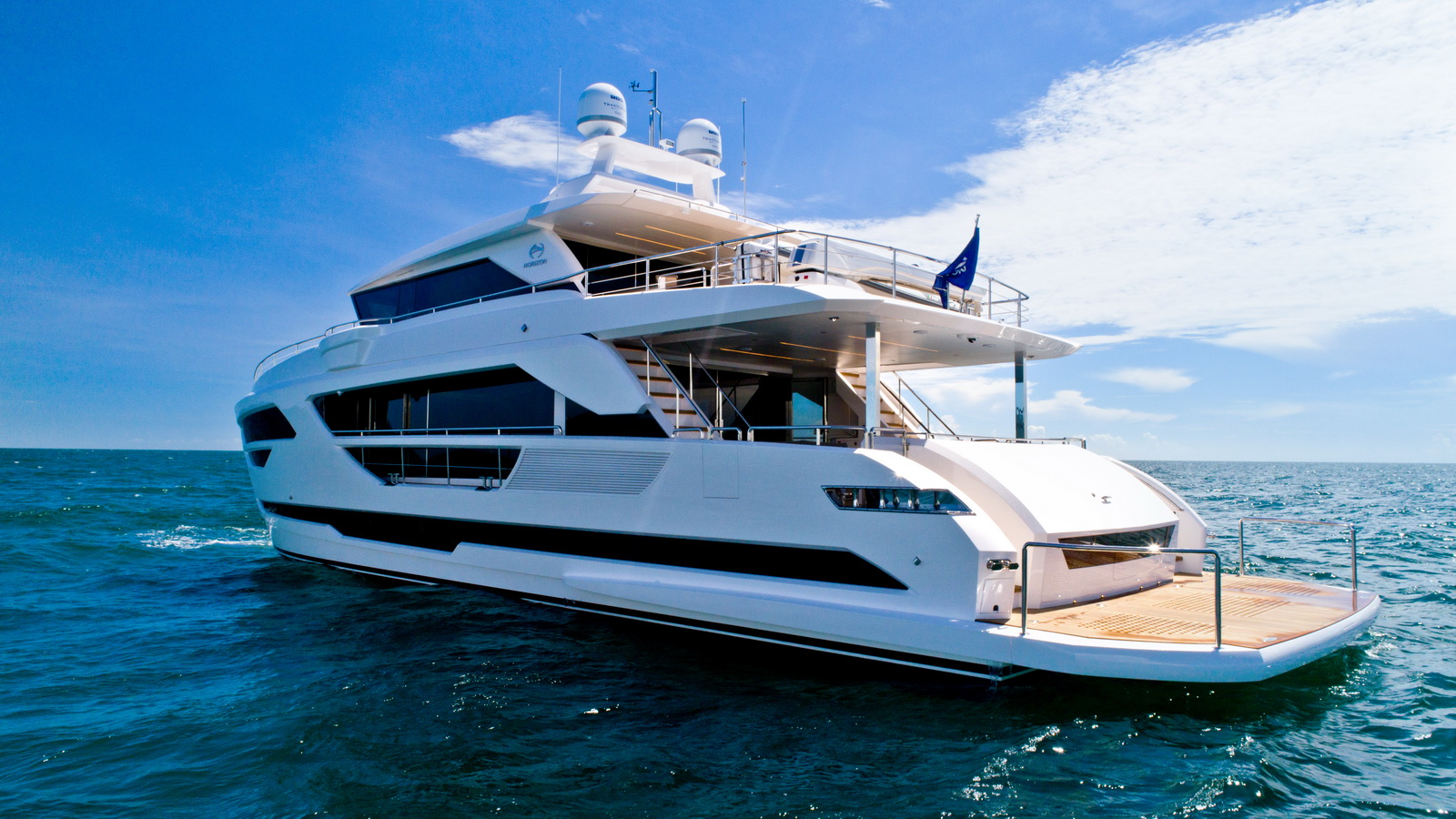 Each FD90 is equipped with a spacious beach club and swim platform aft, and, assisted by the High Performance Piercing Bow and hull design, with high-end equipment as standard, performance is efficient and stable.