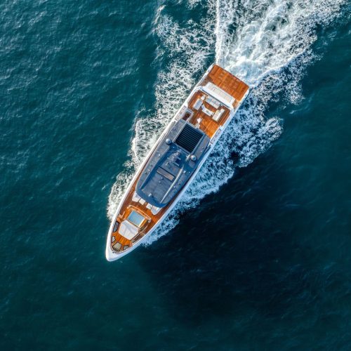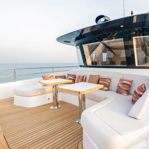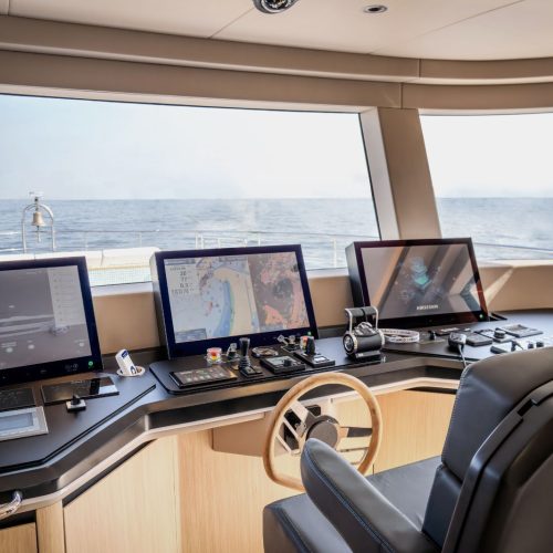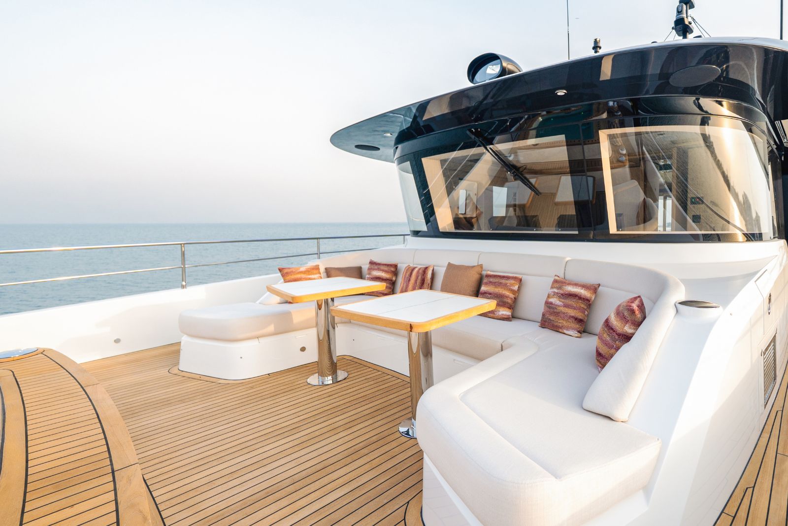 Performance and comfort work in harmony aboard the Majesty 100 Terrace. Powered by twin MTU engines and supported by a refined semi-displacement hull, she delivers smooth cruising, strong range and confident handling. Generous natural light, well-balanced layouts and refined finishes ensure a relaxed yet sophisticated onboard experience.
