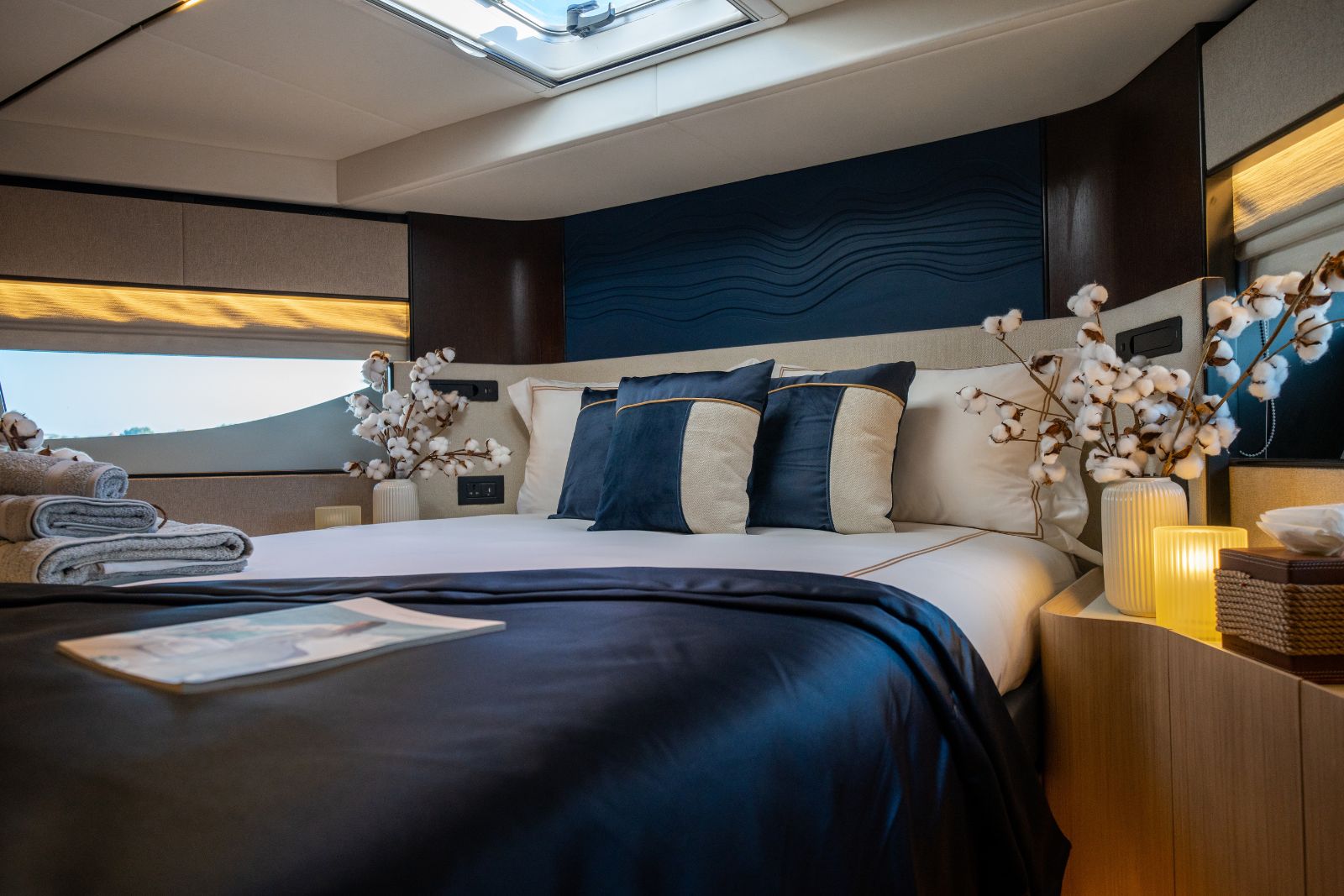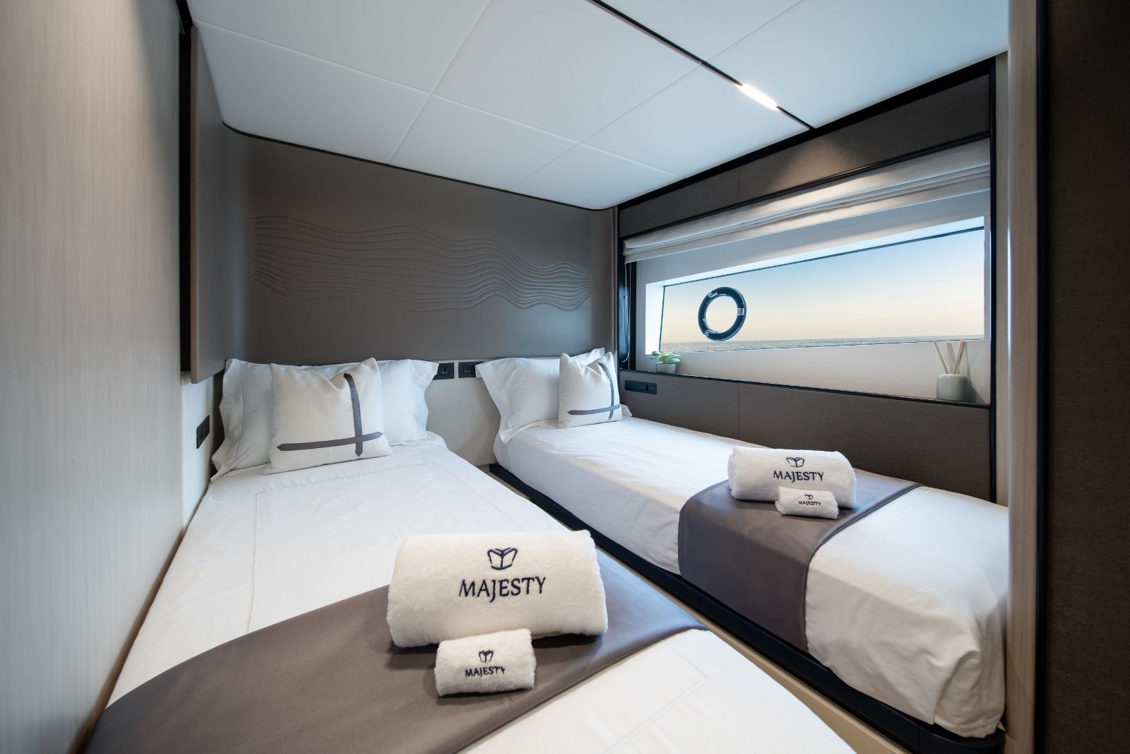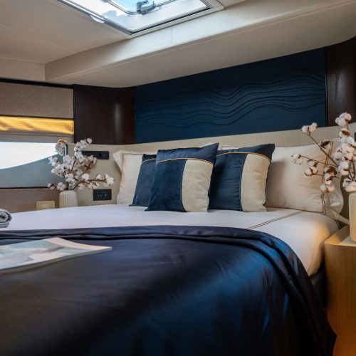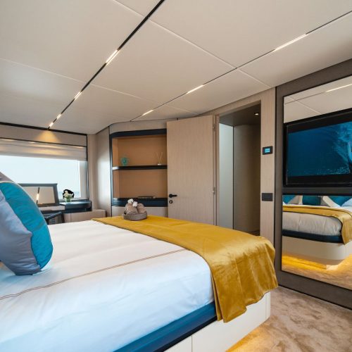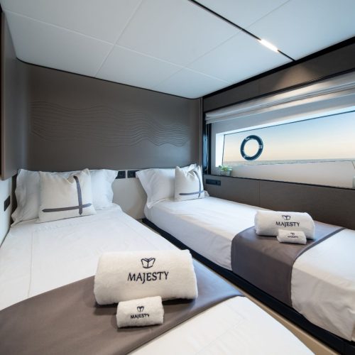 With accommodation for up to 10 guests across four well-appointed cabins, plus dedicated crew quarters, the Majesty 72 is ideally suited for both private ownership and charter operations. Premium finishes, refined detailing, and a balanced mix of textures and materials create a modern, sophisticated onboard atmosphere.