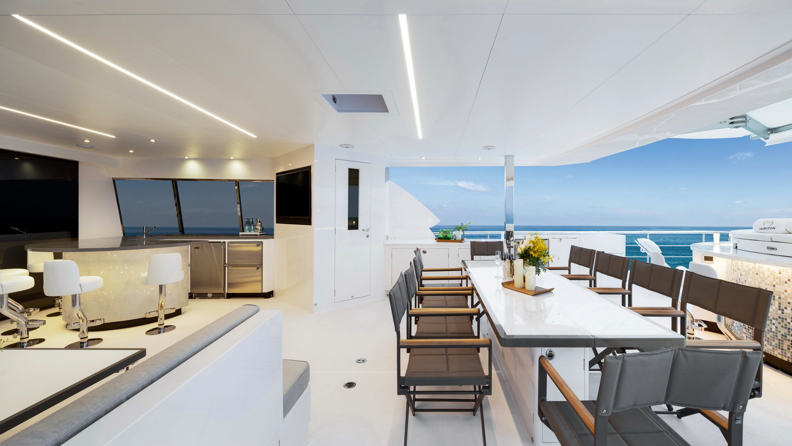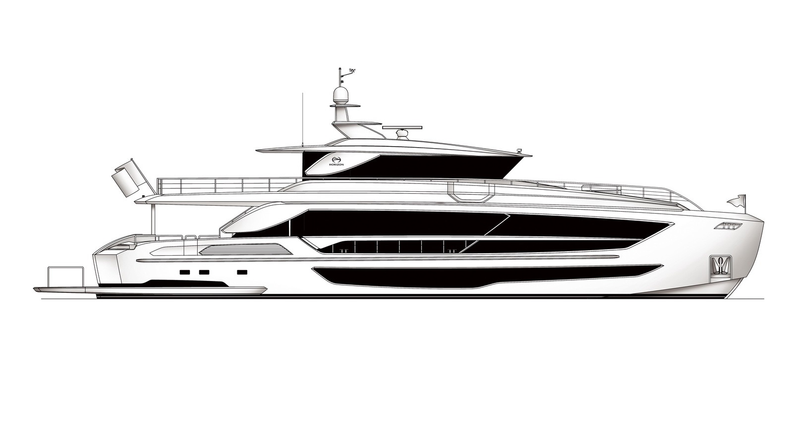 The Horizon FD110 represents the next generation of luxury superyachts with stylish exterior lines, impressive interior volume and large outdoor spaces.