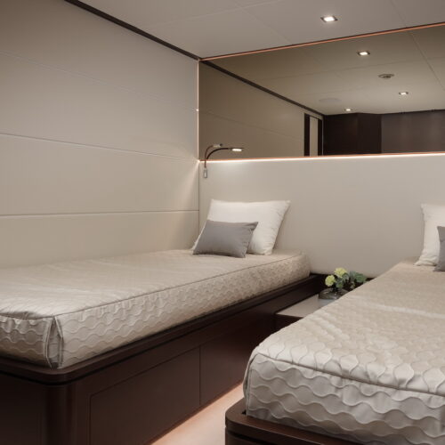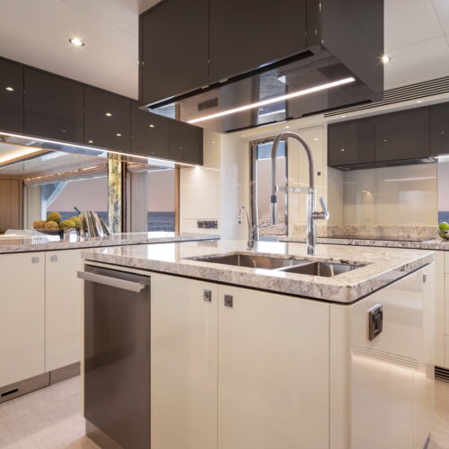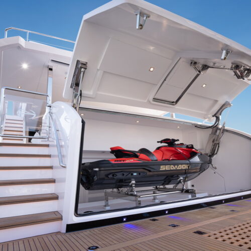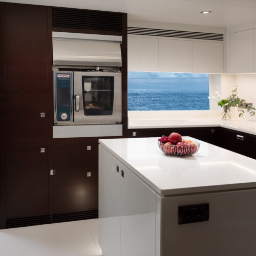The FD110 is designed with spacious crew quarters for six aft as well as a fully equipped beach club.