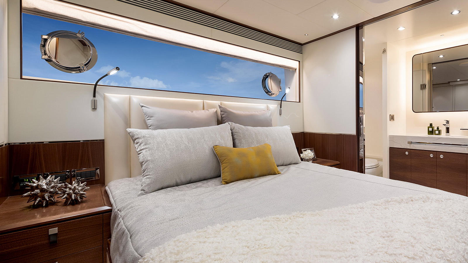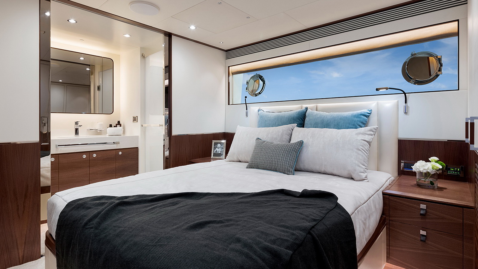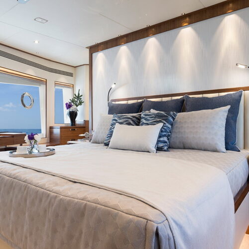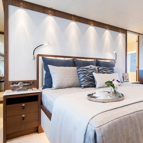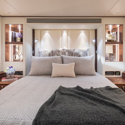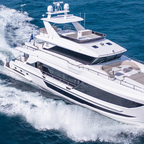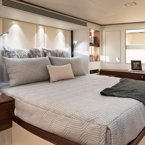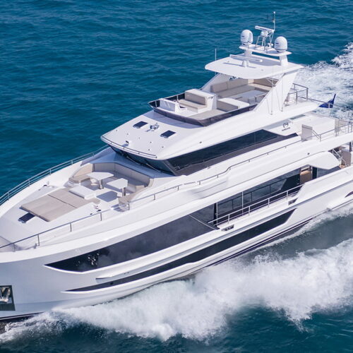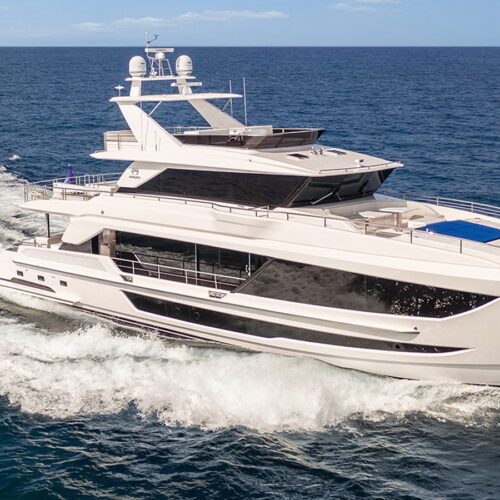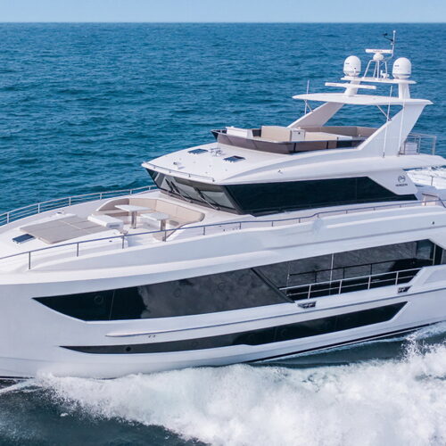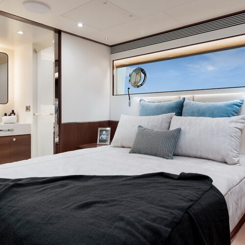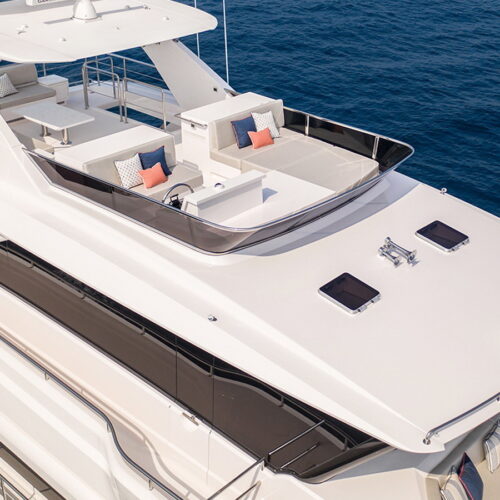 Available in a Skyline or Tri-Deck version, the FD100 offers five staterooms, including a full-beam master suite on the main deck.