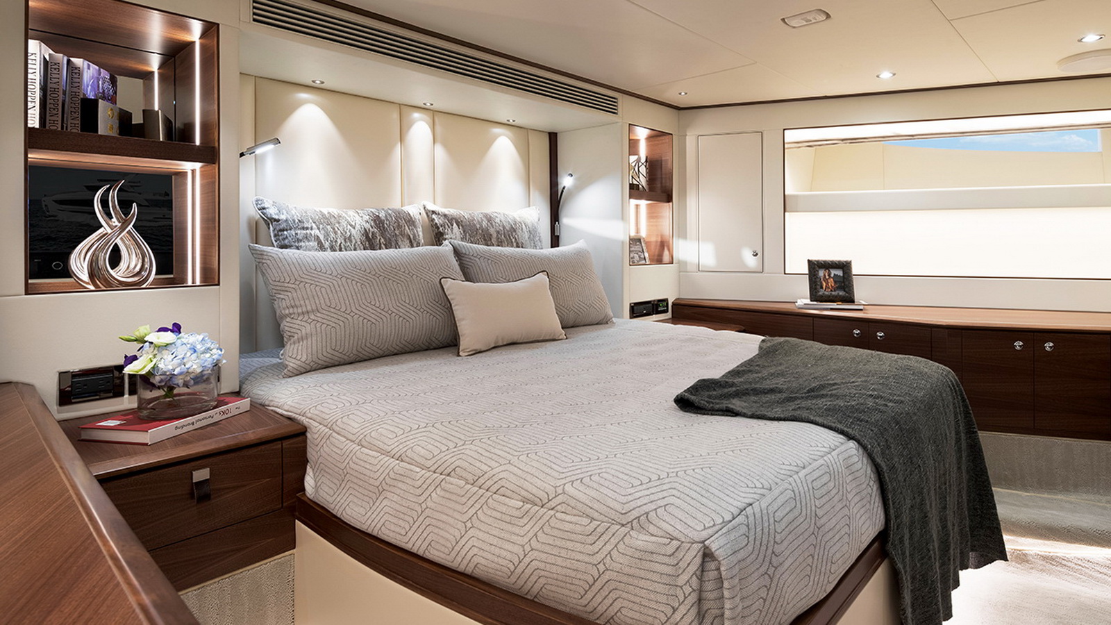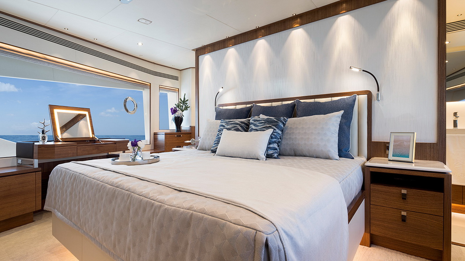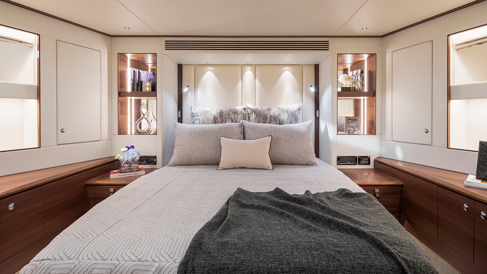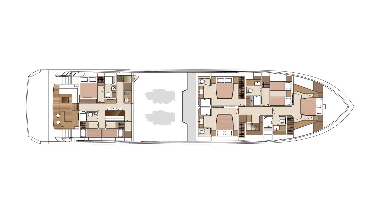 Available in a Skyline or Tri-Deck version, the FD100 offers five staterooms, including a full-beam master suite on the main deck.