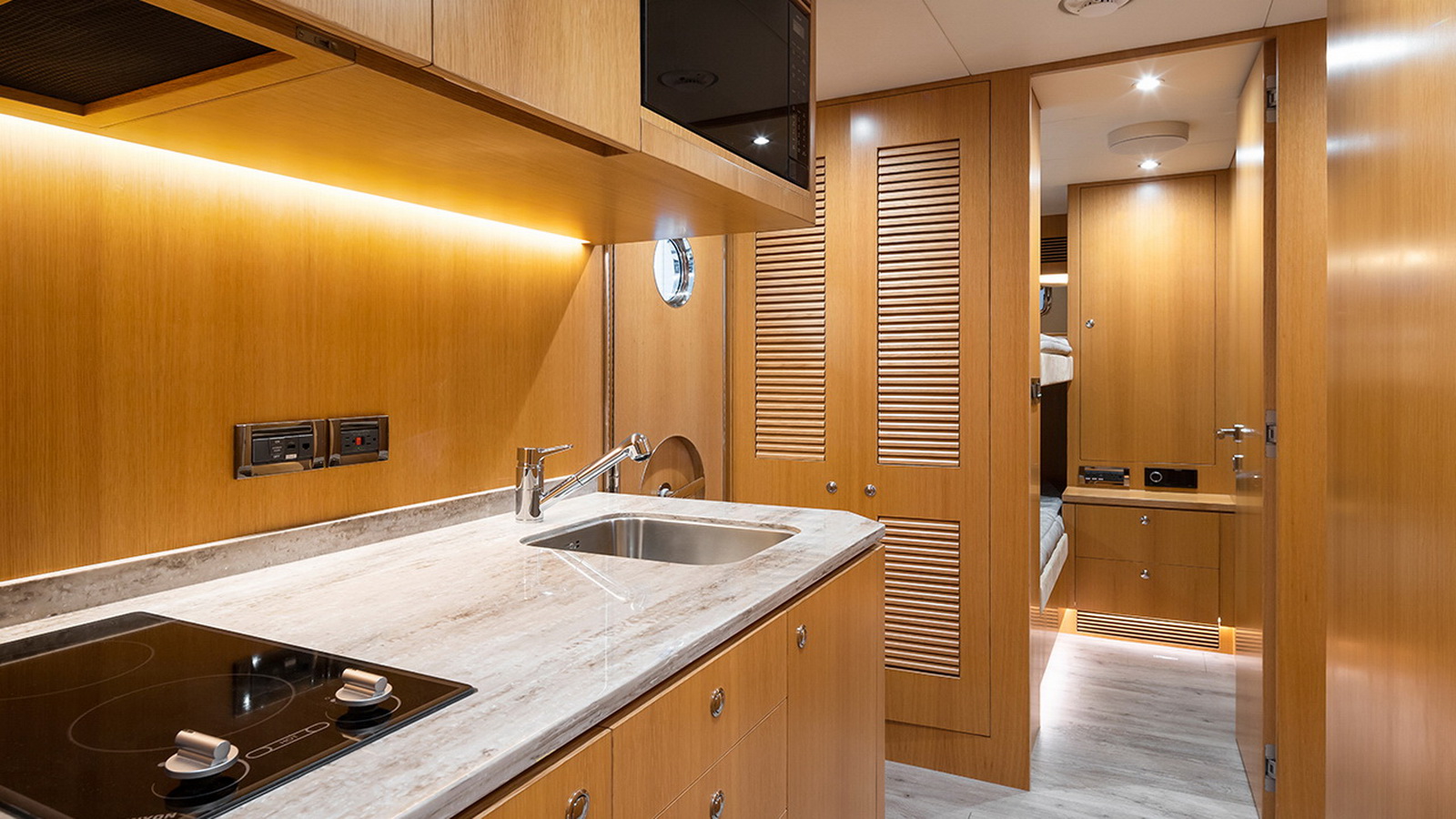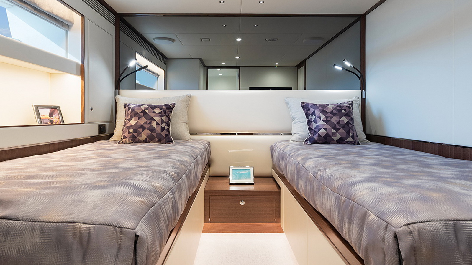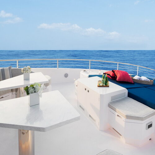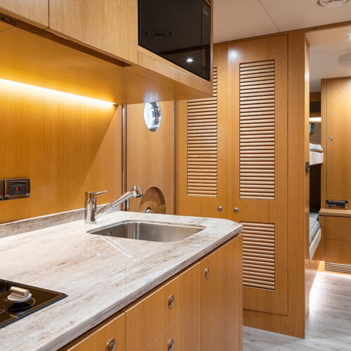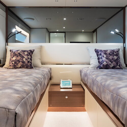The FD100 is designed with spacious crew quarters for four aft as well as a fully equipped beach club.