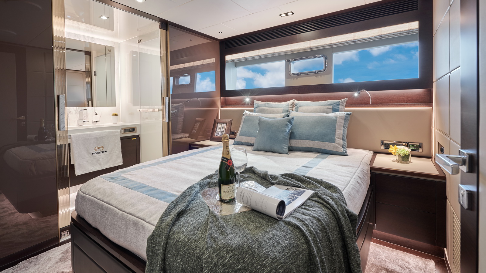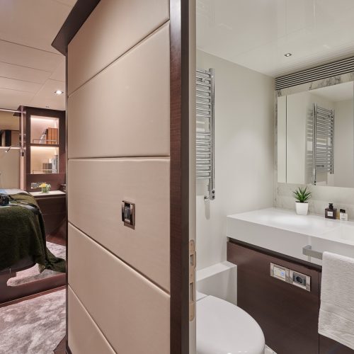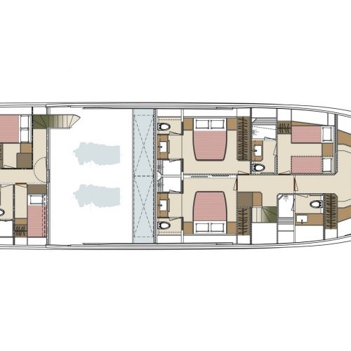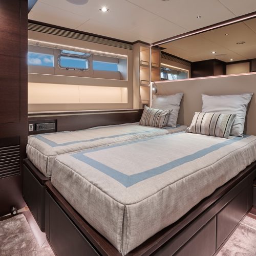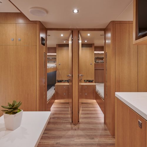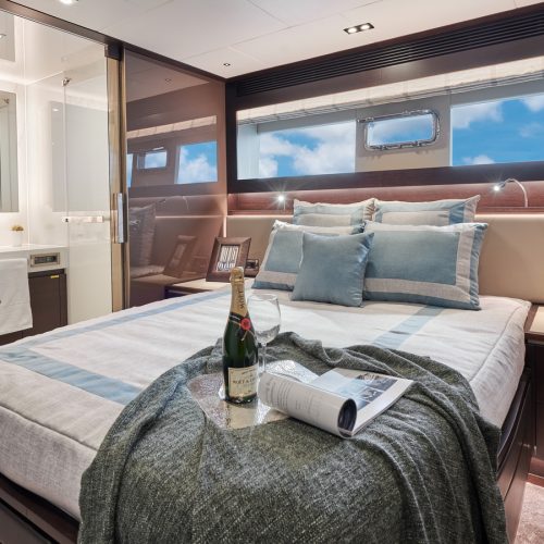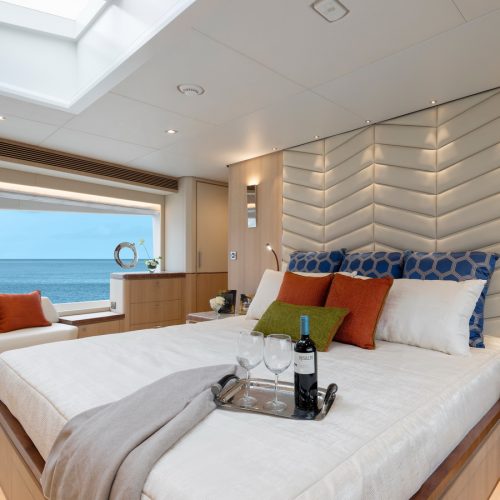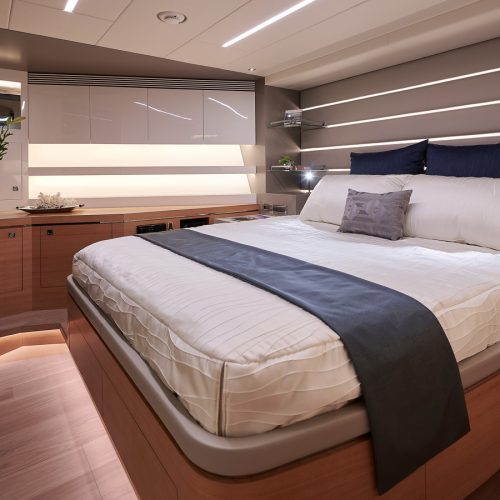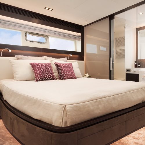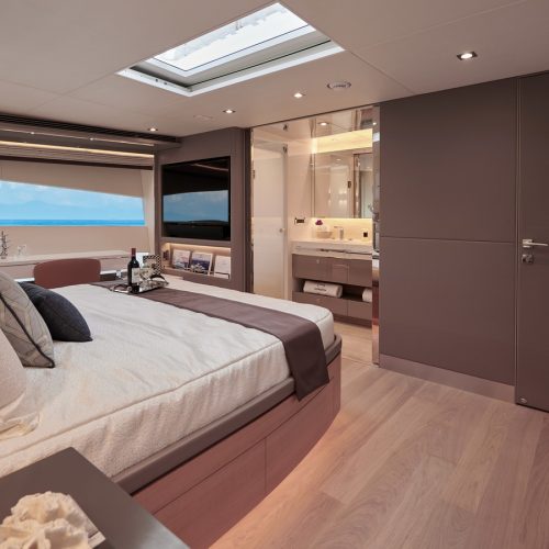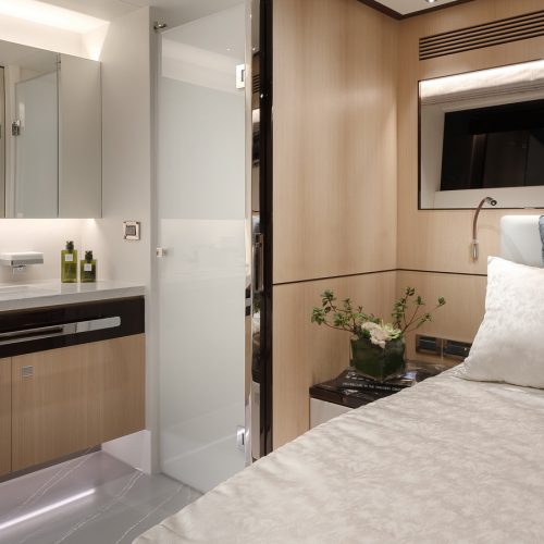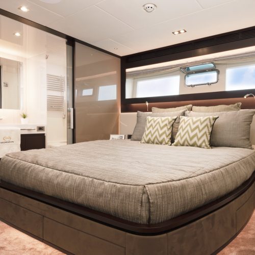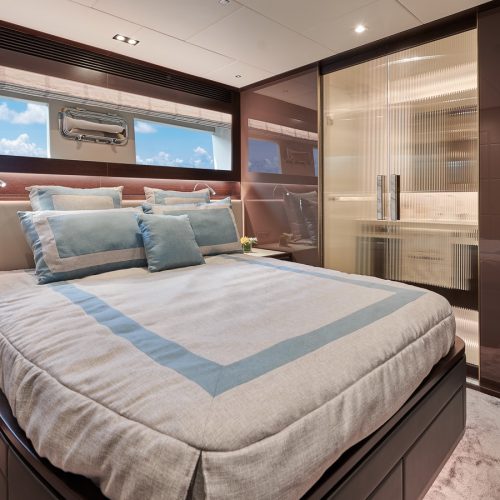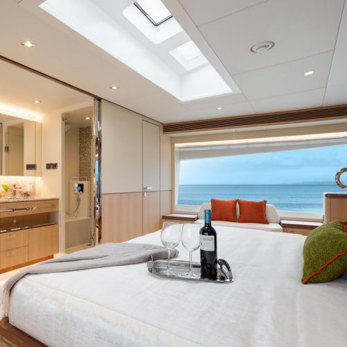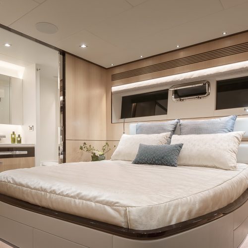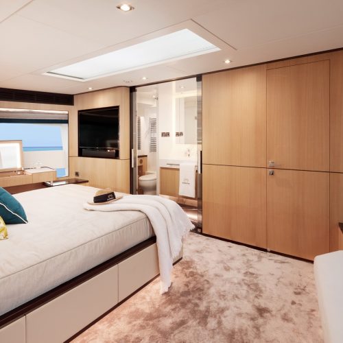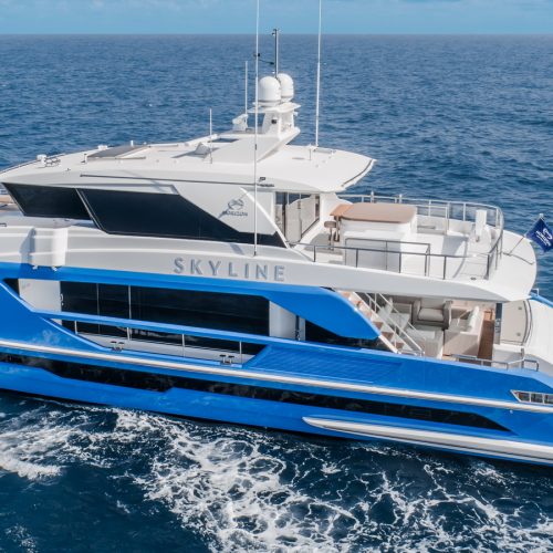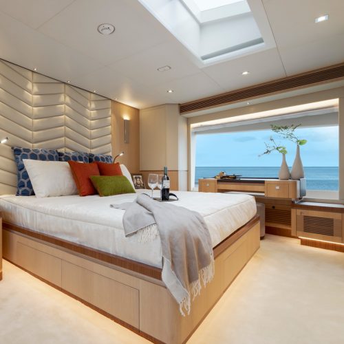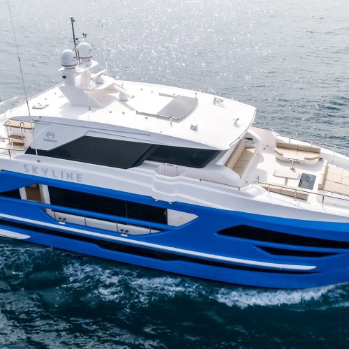 The most popular model in the acclaimed FD Series, the FD90 embodies the space, layout and performance that define the Fast Displacement range. Available in Open or Skyline (enclosed) bridge configurations, the FD90 features an expansive 23’ 3” beam, spacious on-deck Master with four guest staterooms and two crew cabins below deck, and large windows in the salon.