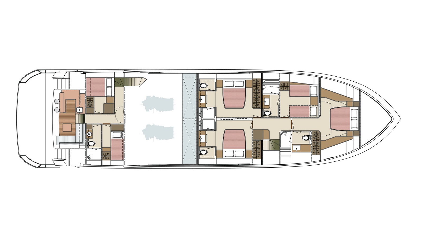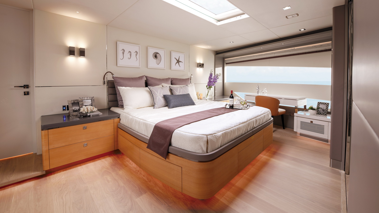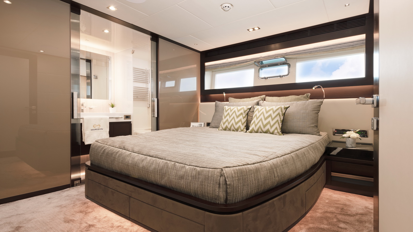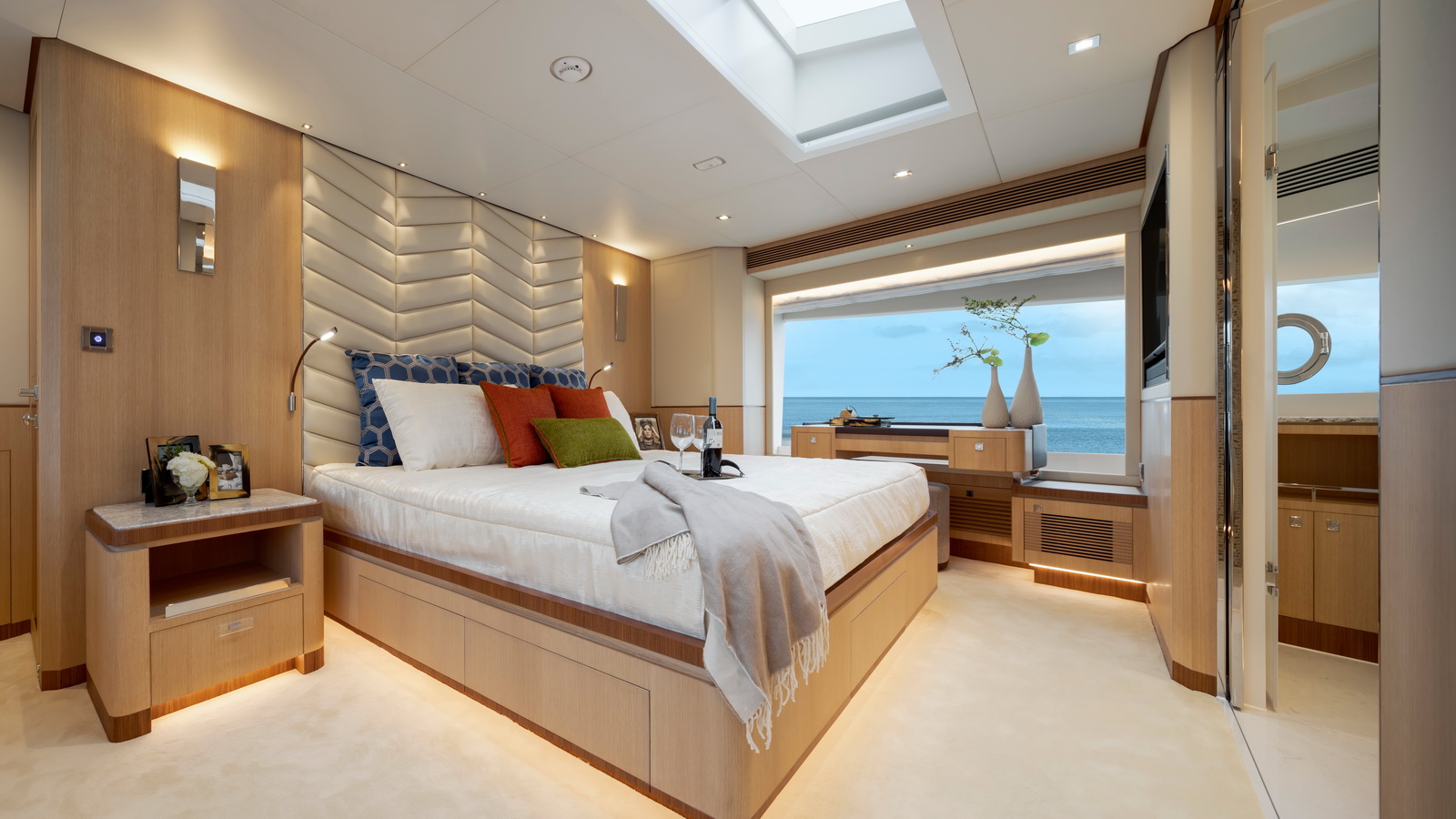 The most popular model in the acclaimed FD Series, the FD90 embodies the space, layout and performance that define the Fast Displacement range. Available in Open or Skyline (enclosed) bridge configurations, the FD90 features an expansive 23’ 3” beam, spacious on-deck Master with four guest staterooms and two crew cabins below deck, and large windows in the salon.