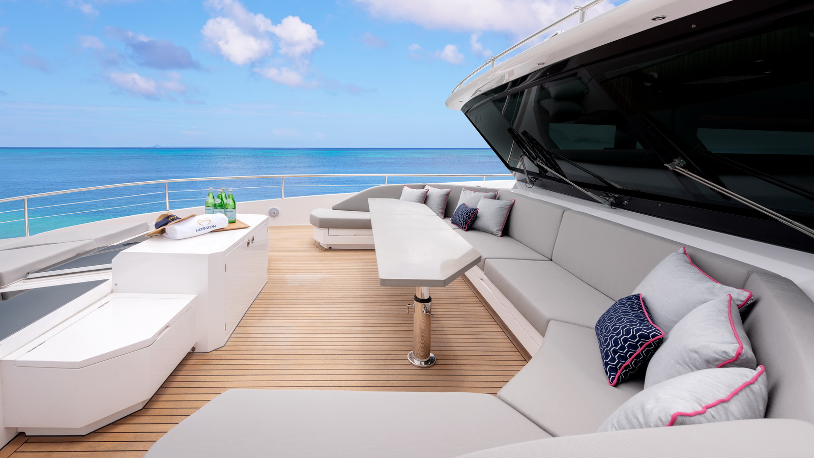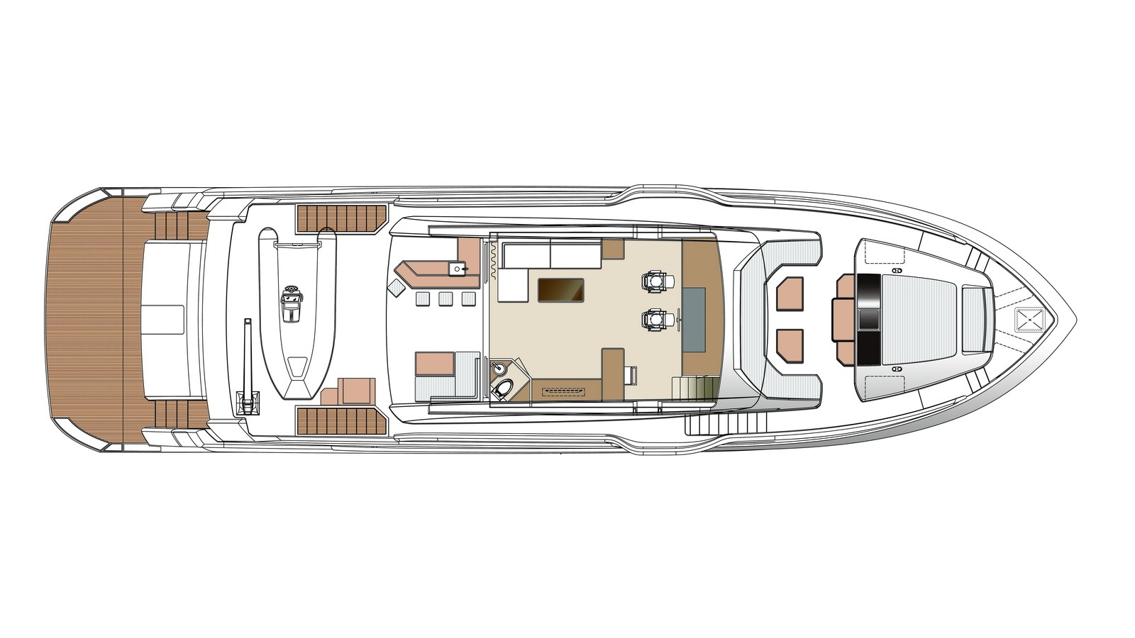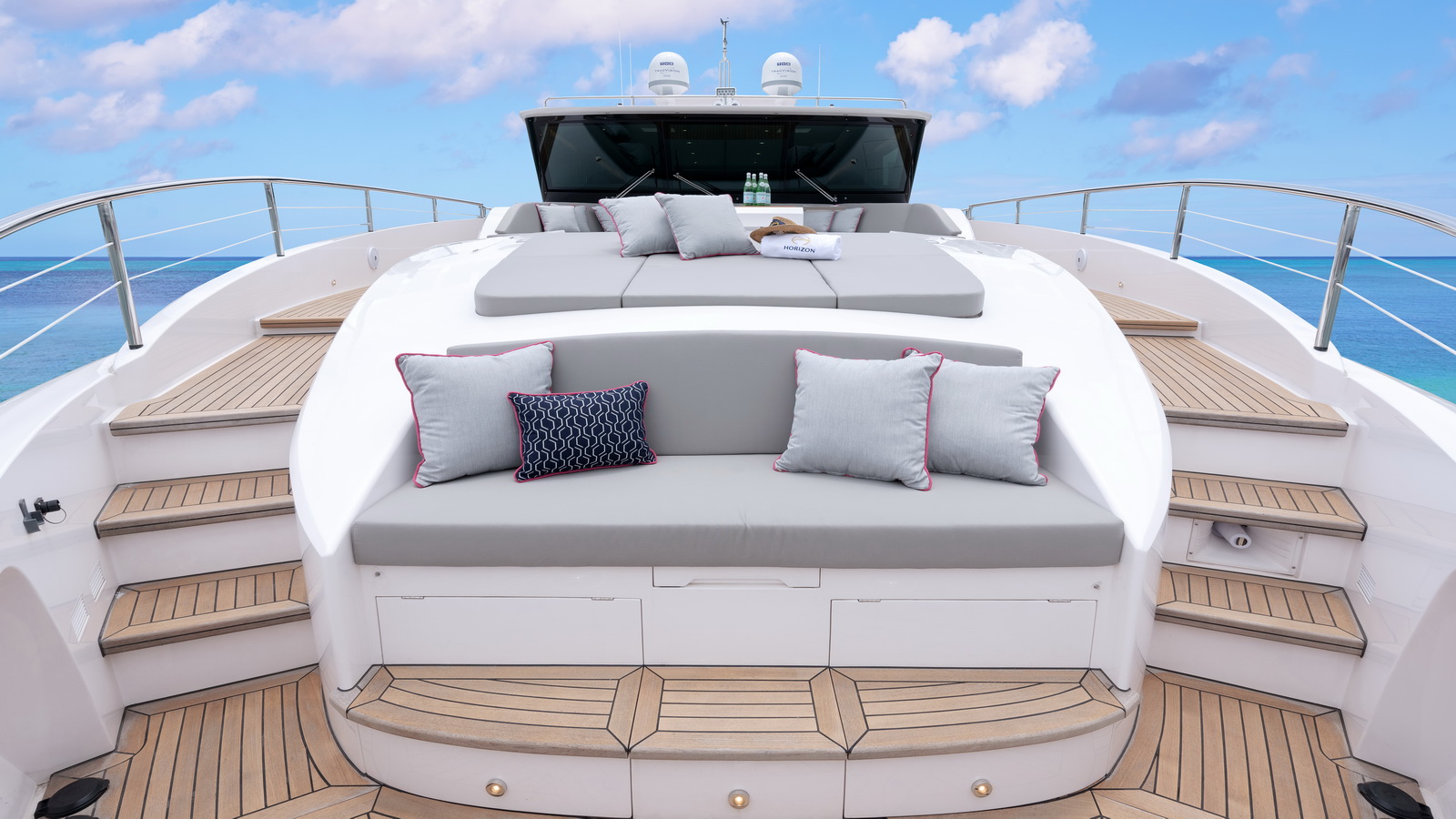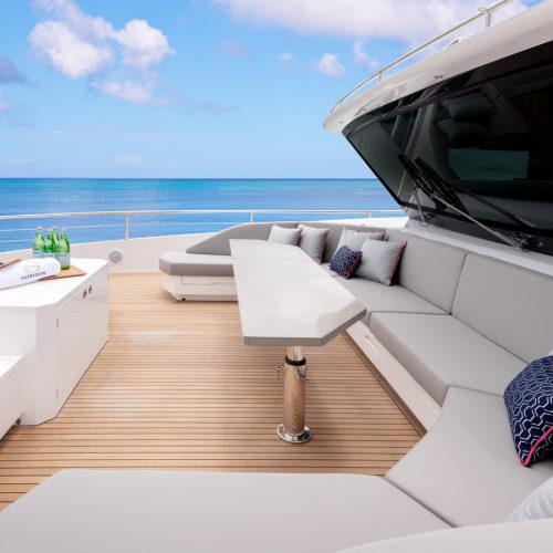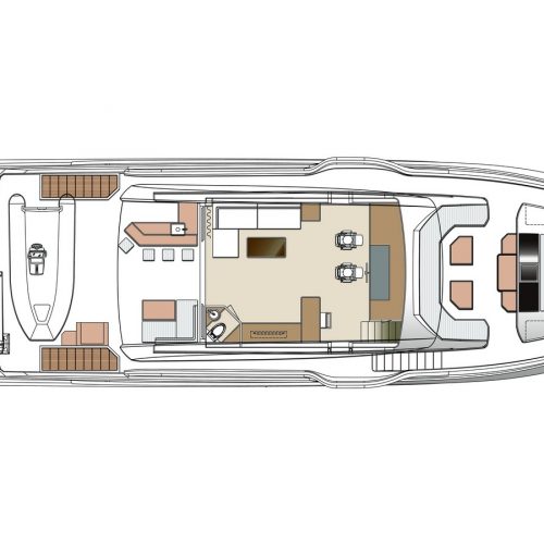 A walkaround design on the bridge deck affords ease of access between the boat deck and forward seating areas, which can be customized with multiple features from refrigeration to storage, sun shades and more.