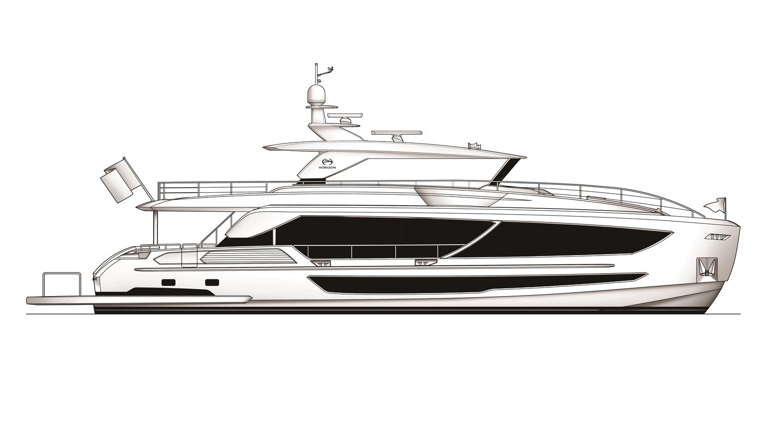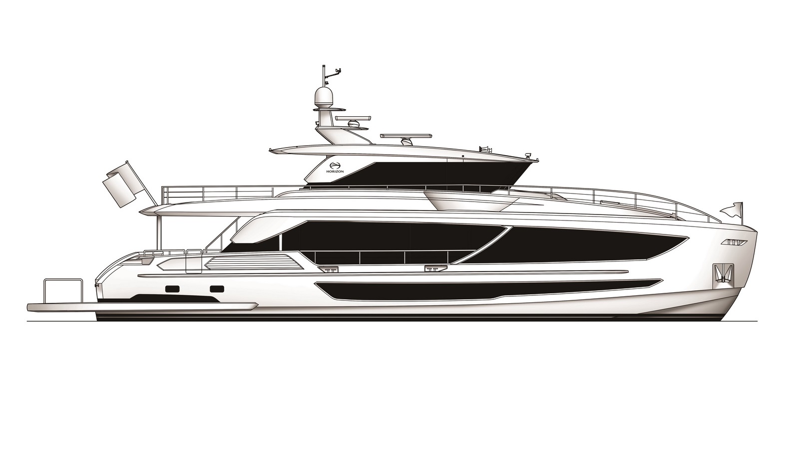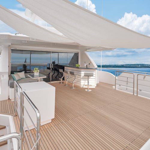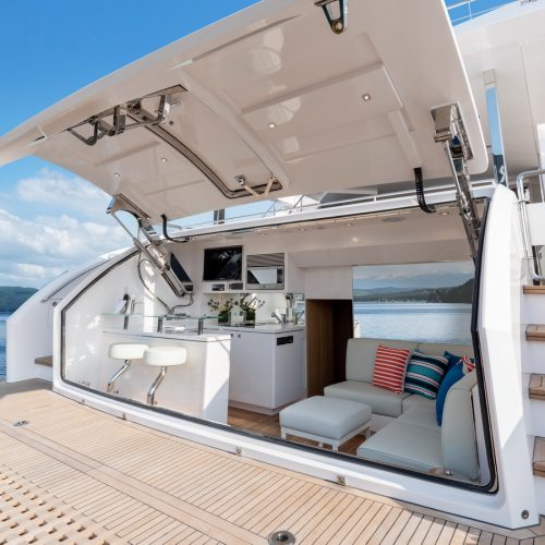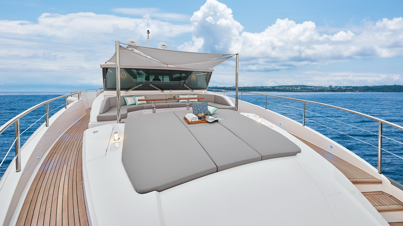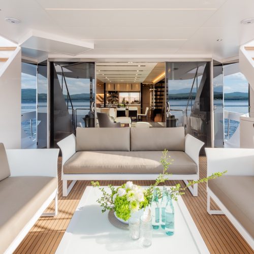 Each FD90 is equipped with a spacious beach club and swim platform aft, and, assisted by the High Performance Piercing Bow and hull design, with high-end equipment as standard, performance is efficient and stable.