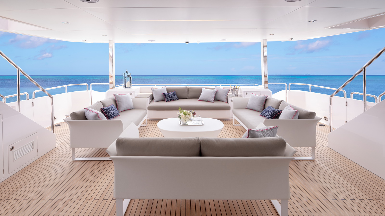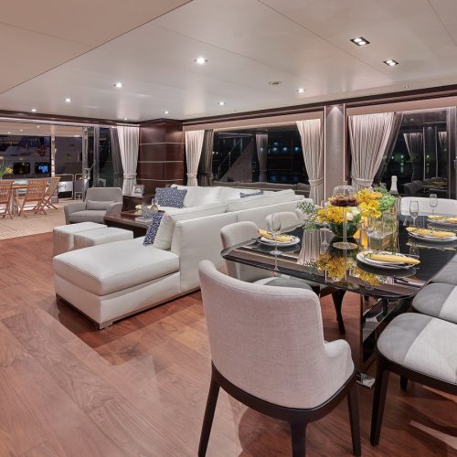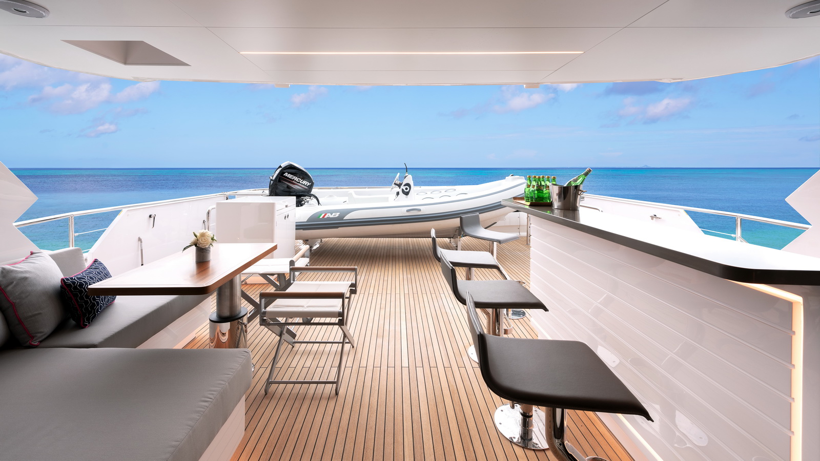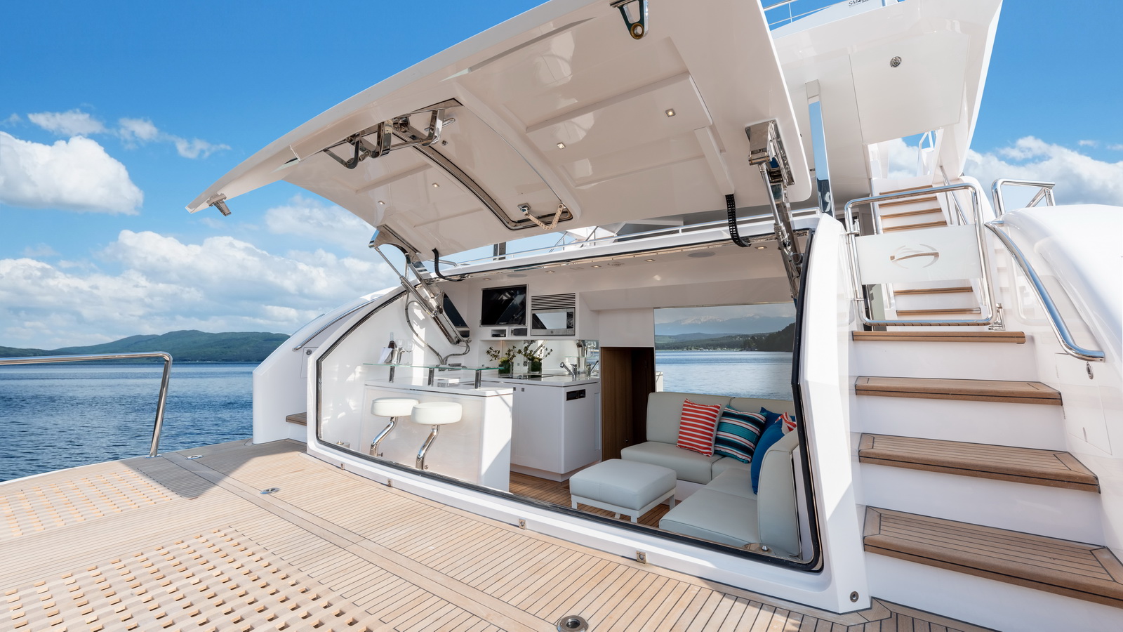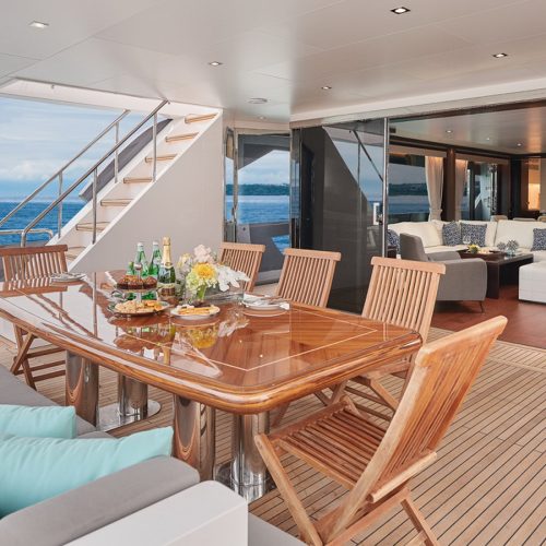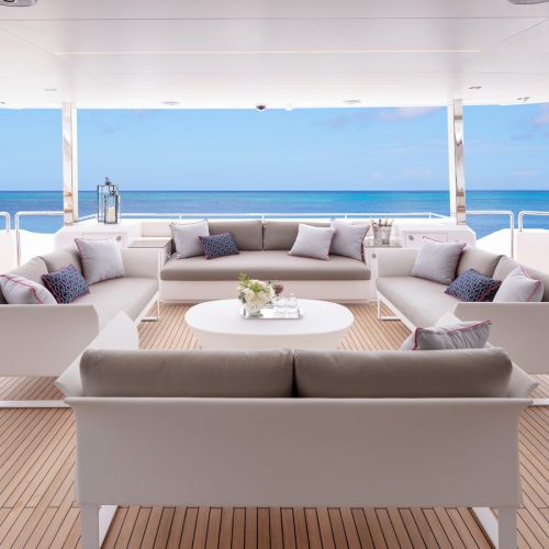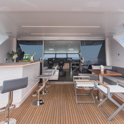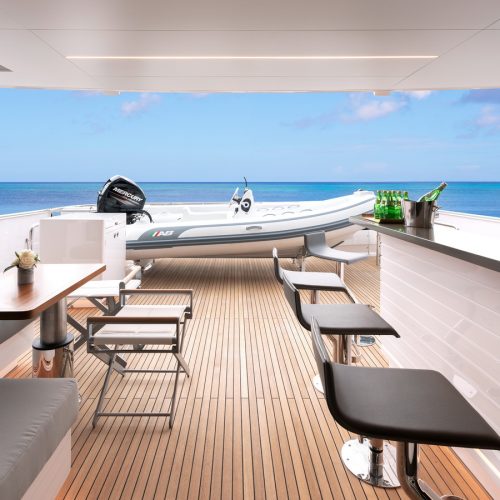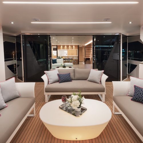 Each FD90 is equipped with a spacious beach club and swim platform aft, and, assisted by the High Performance Piercing Bow and hull design, with high-end equipment as standard, performance is efficient and stable.