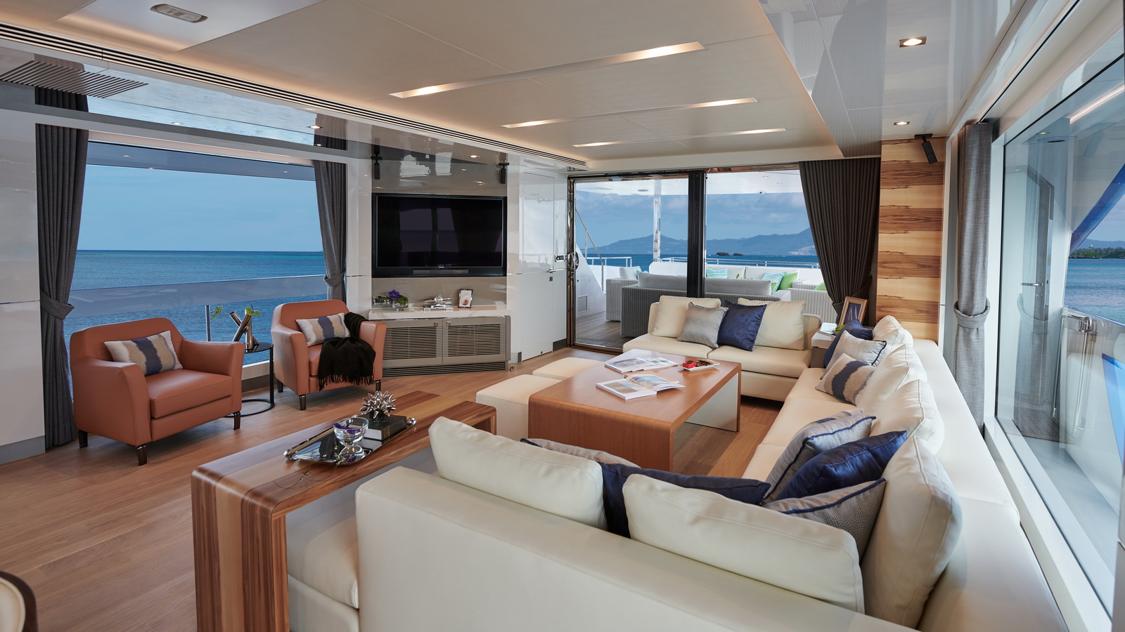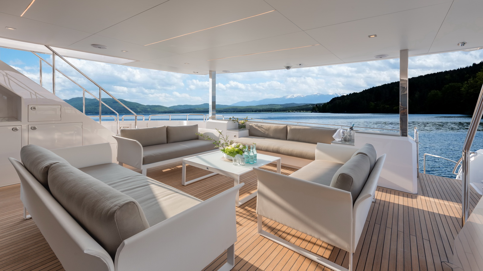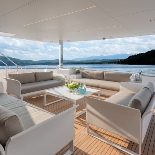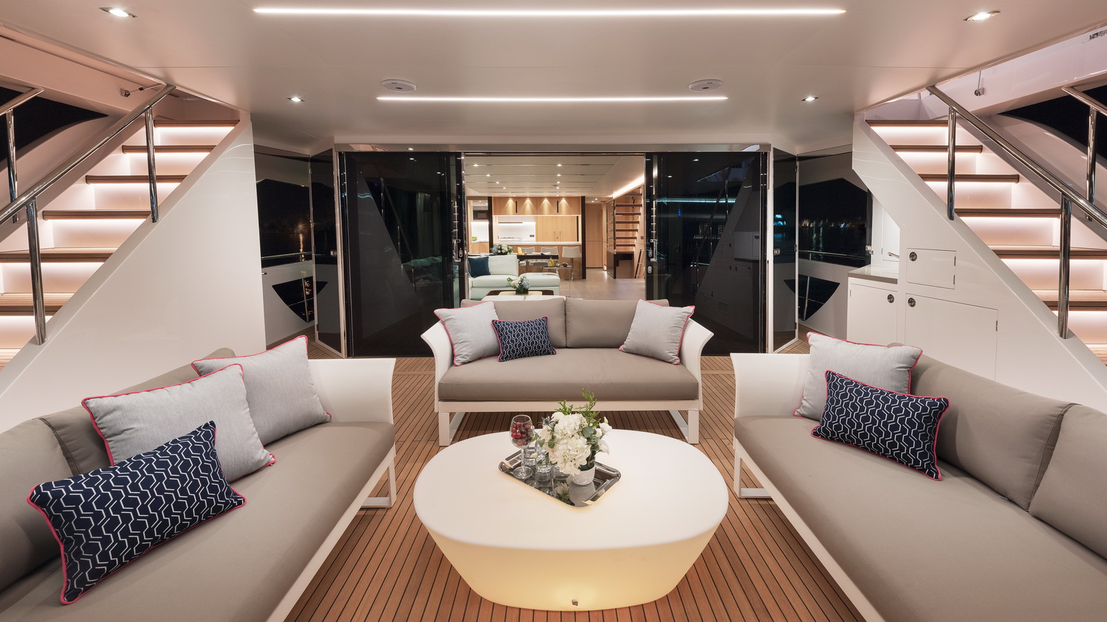 Each FD90 is equipped with a spacious beach club and swim platform aft, and, assisted by the High Performance Piercing Bow and hull design, with high-end equipment as standard, performance is efficient and stable.