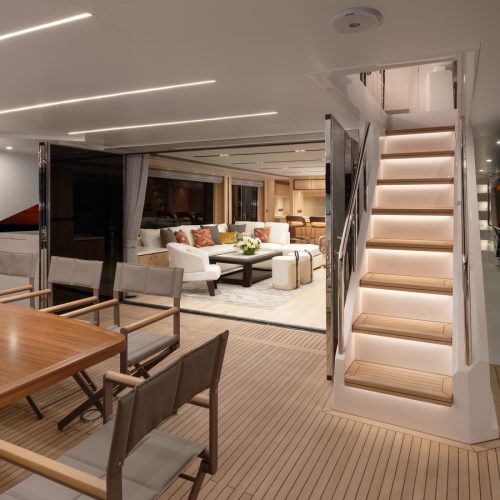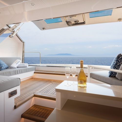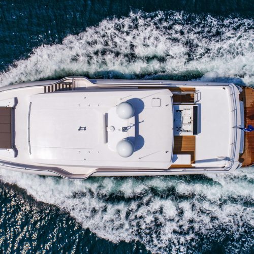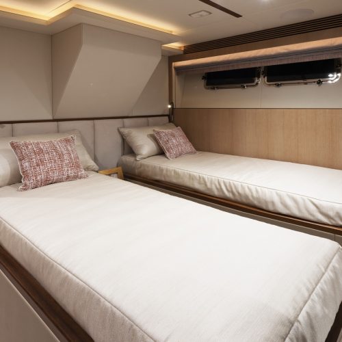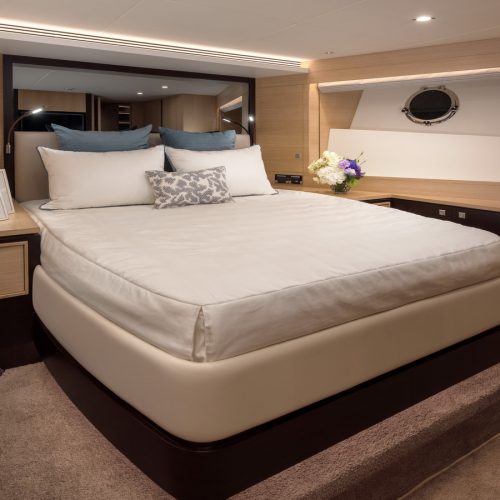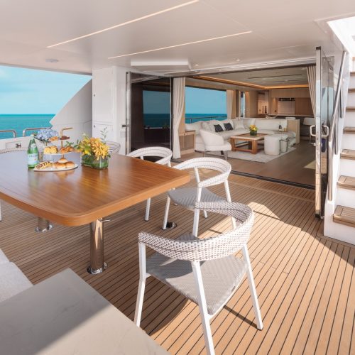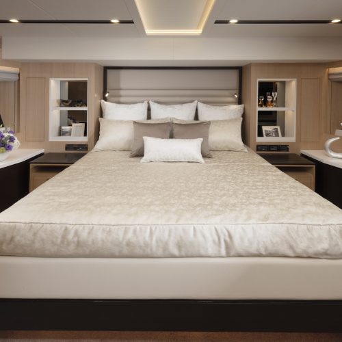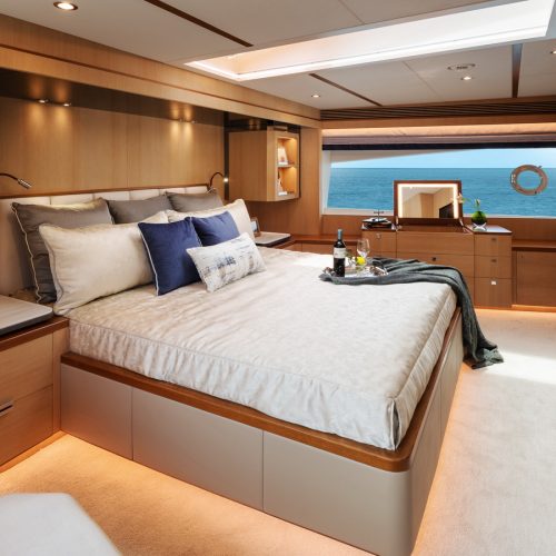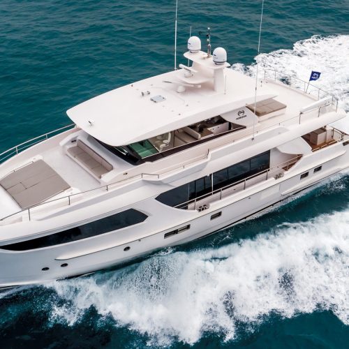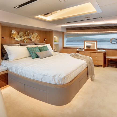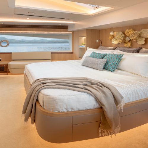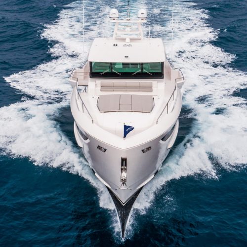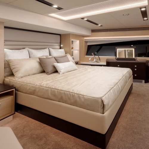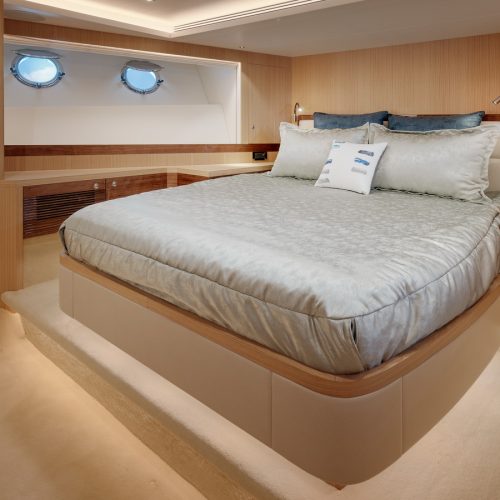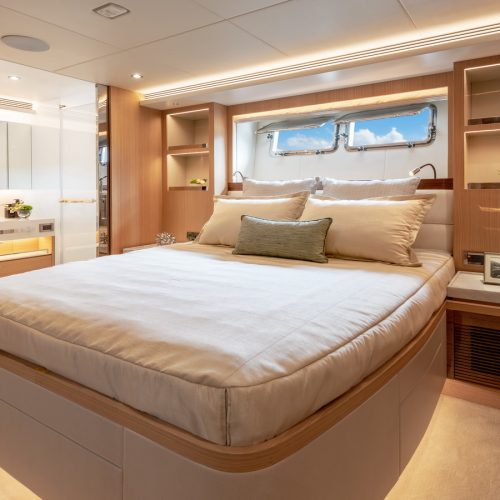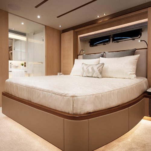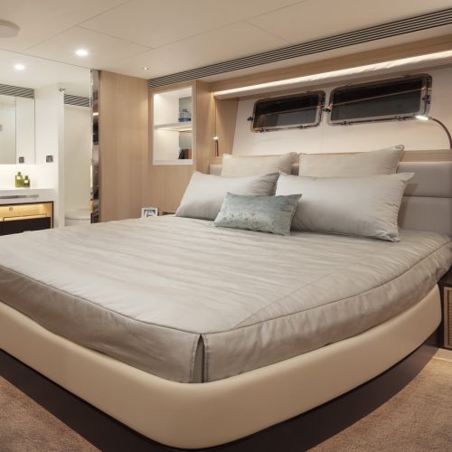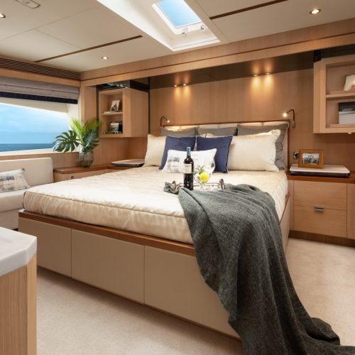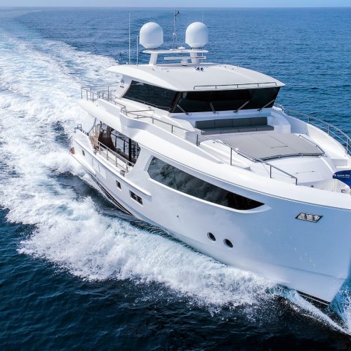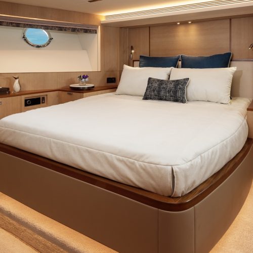 Designed for ownership without compromise, the FD80 offers four staterooms, including an on-deck master, as well as a fully equipped beach club.