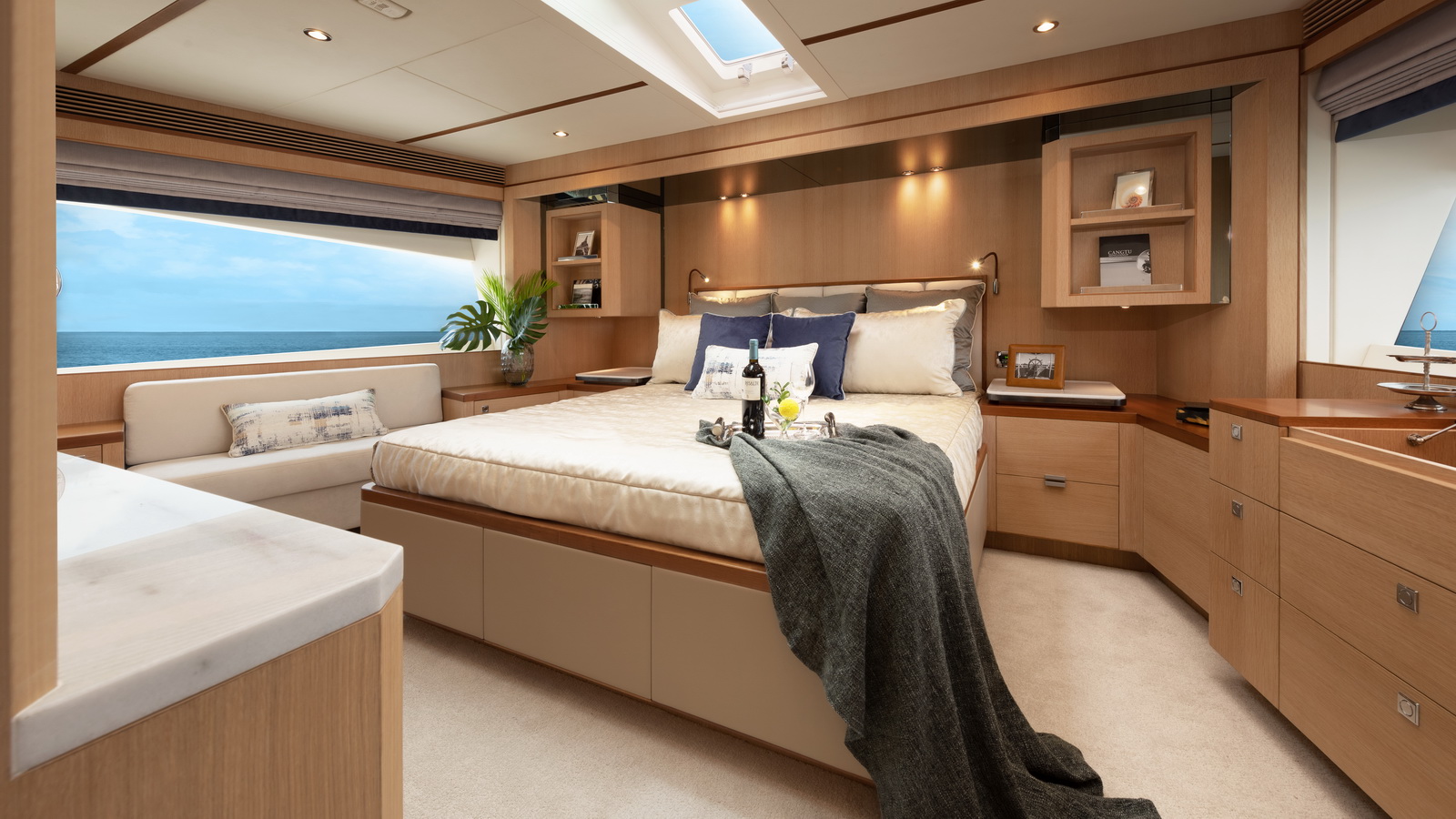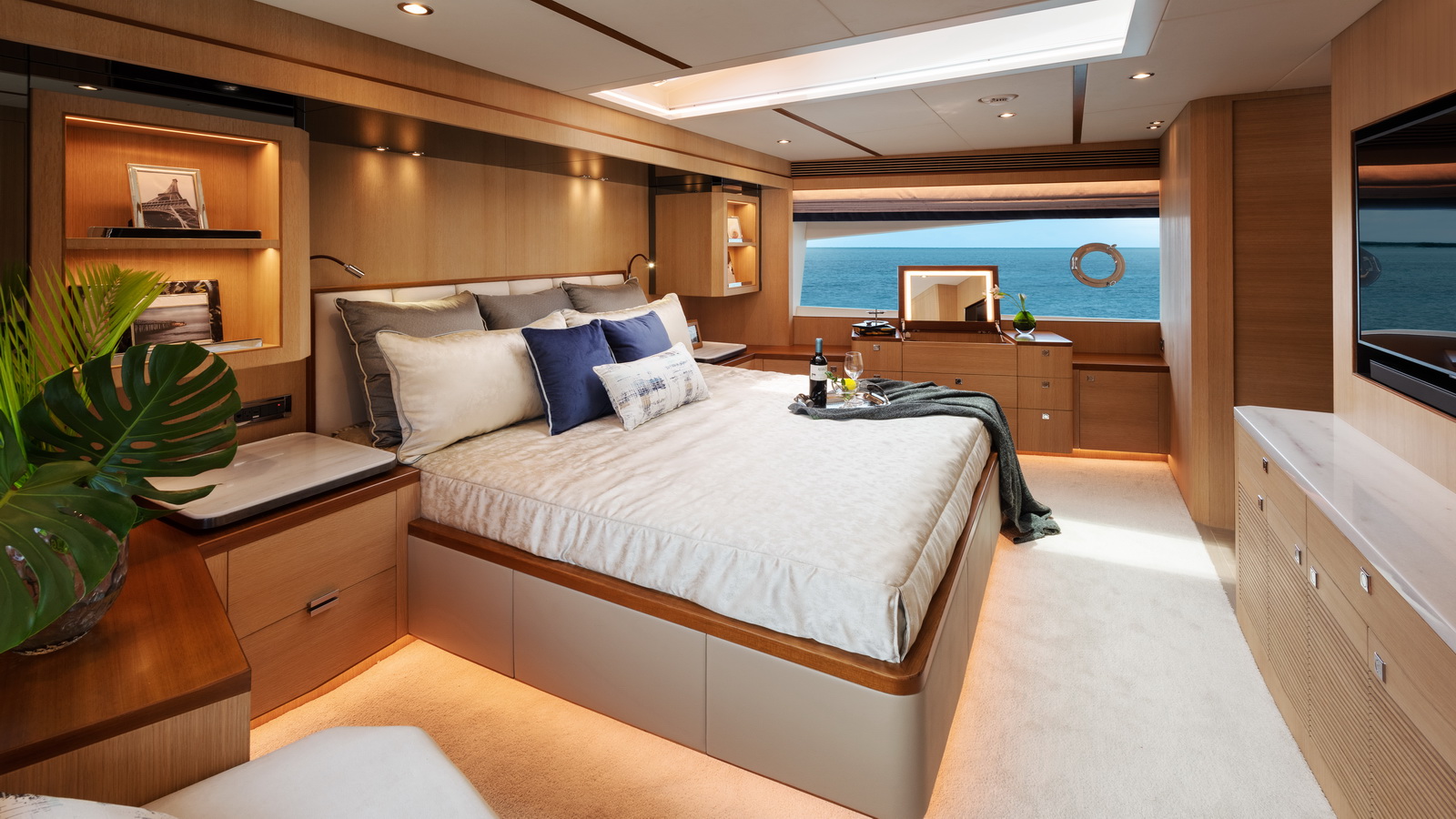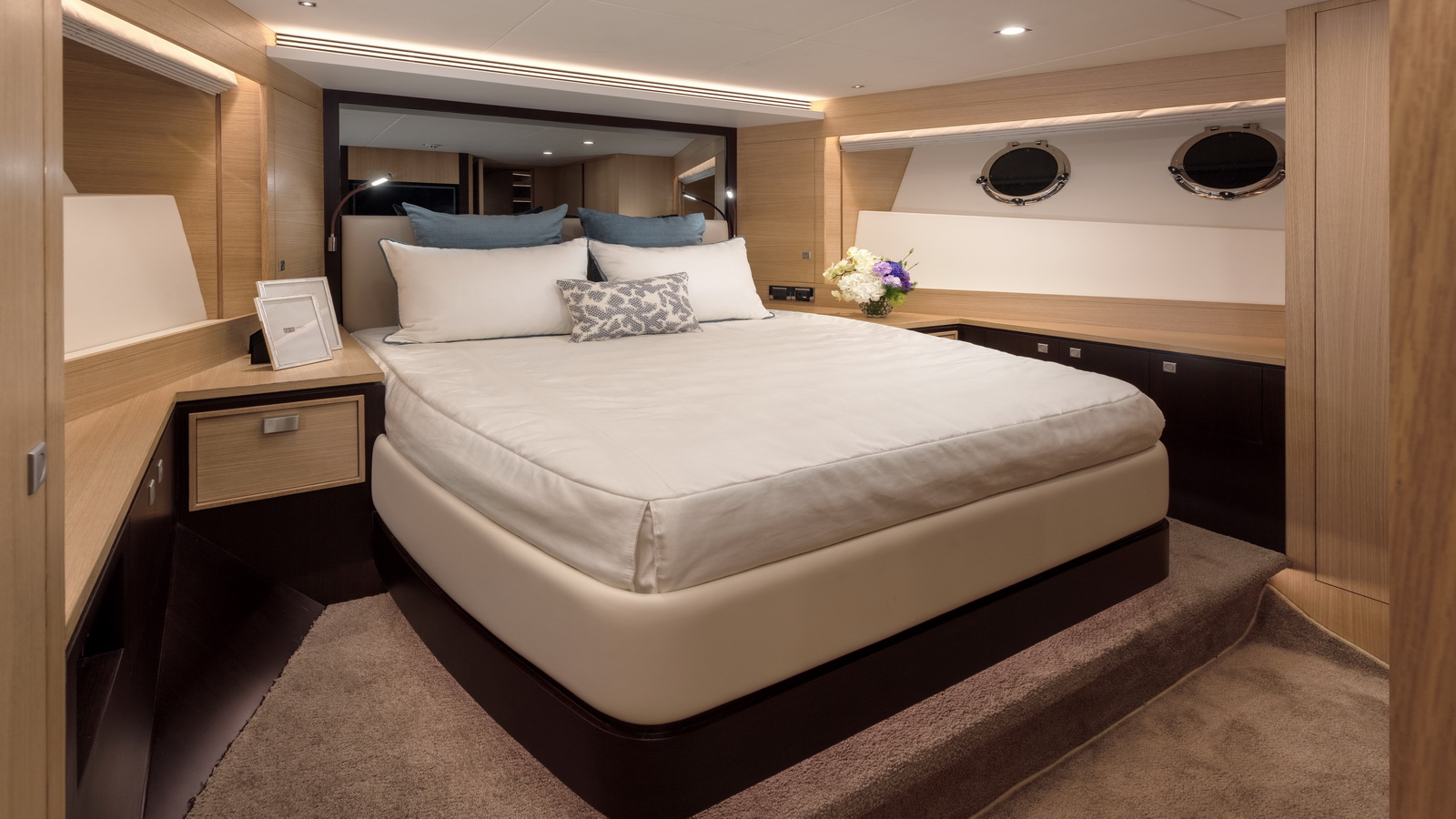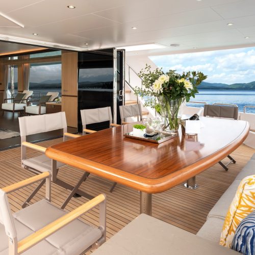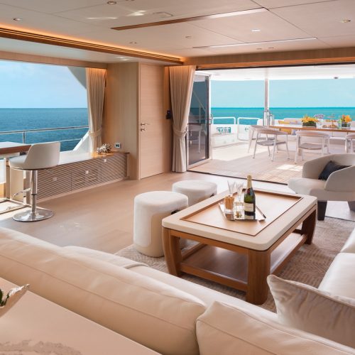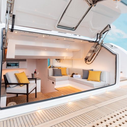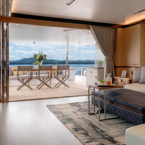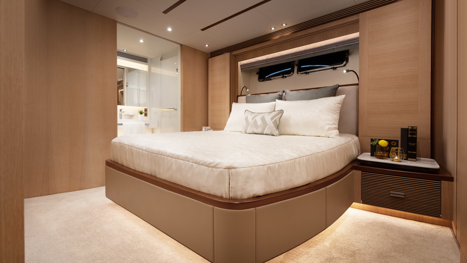 Designed for ownership without compromise, the FD80 offers four staterooms, including an on-deck master, as well as a fully equipped beach club.