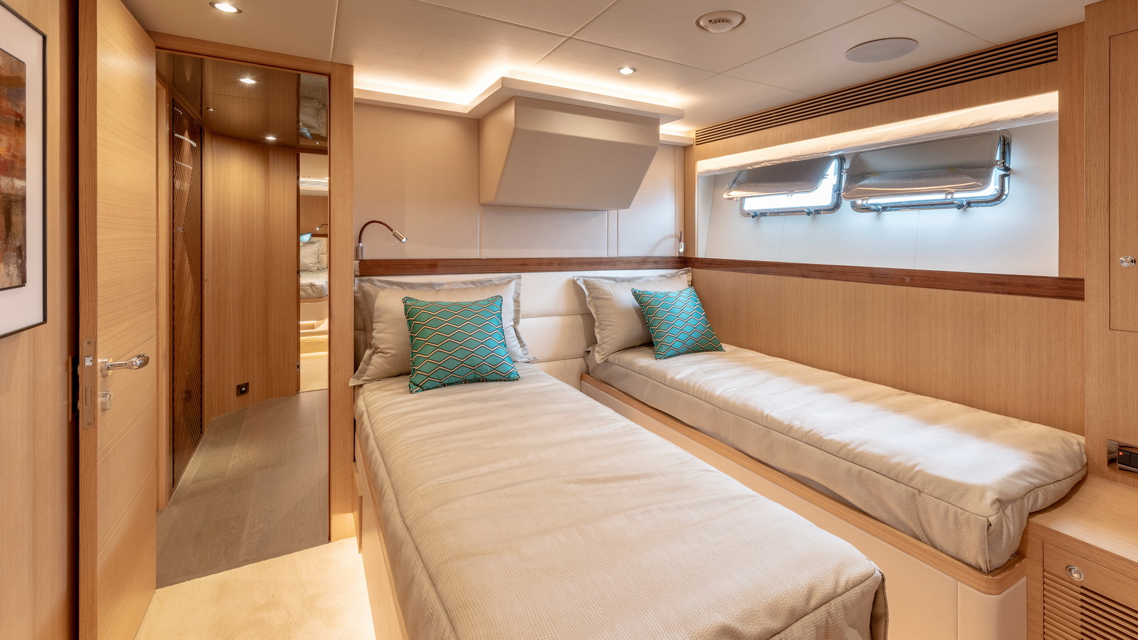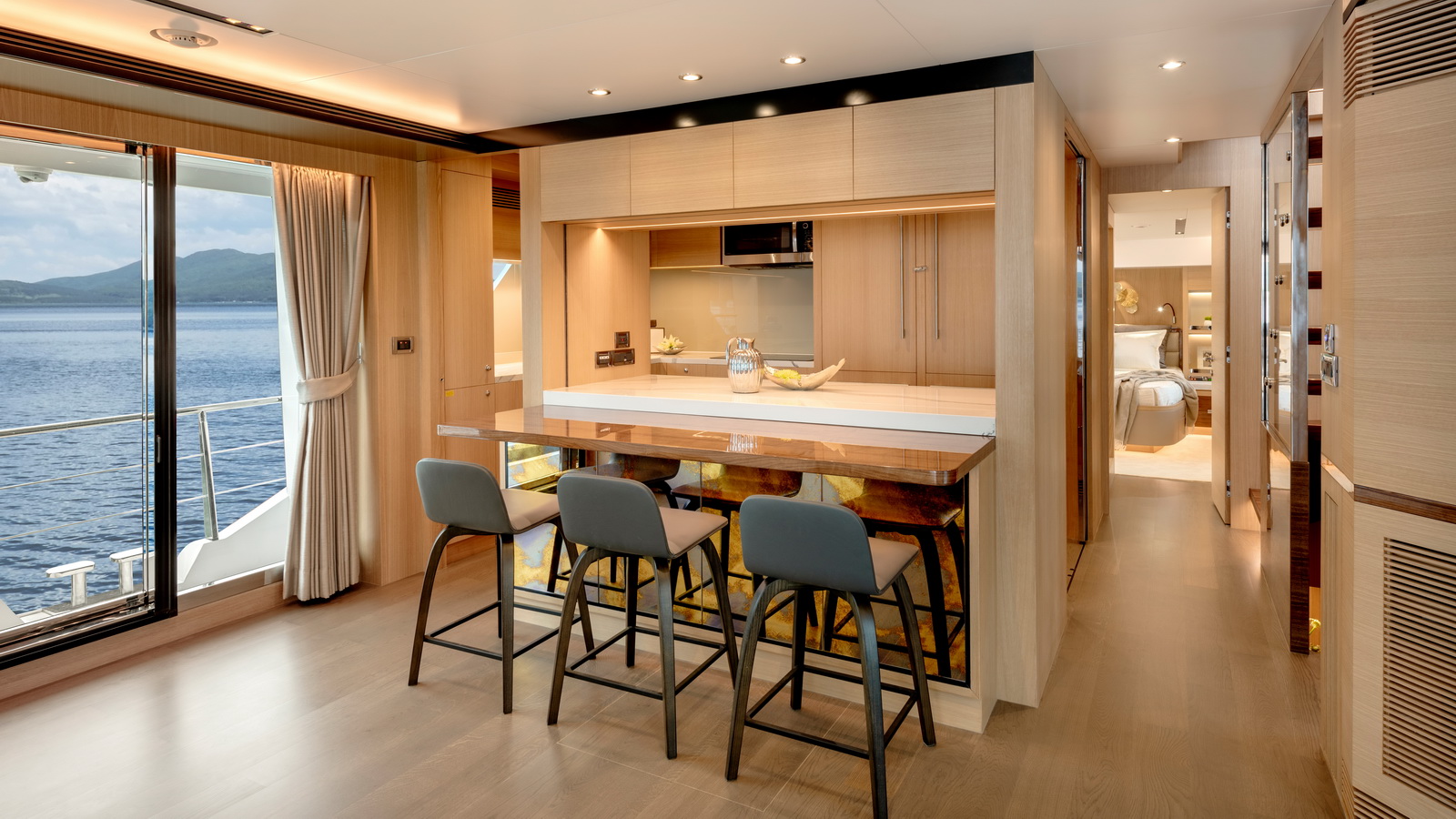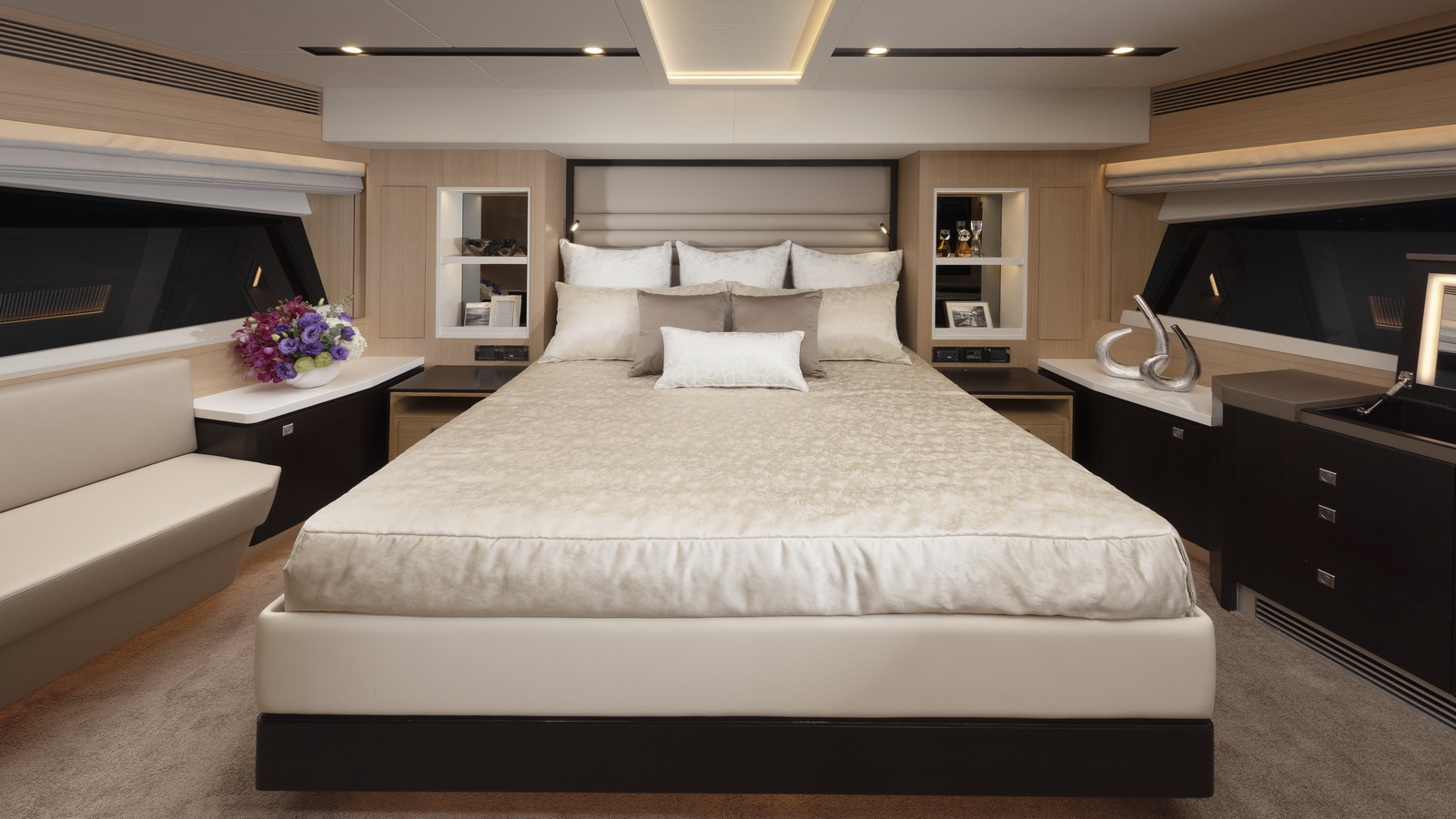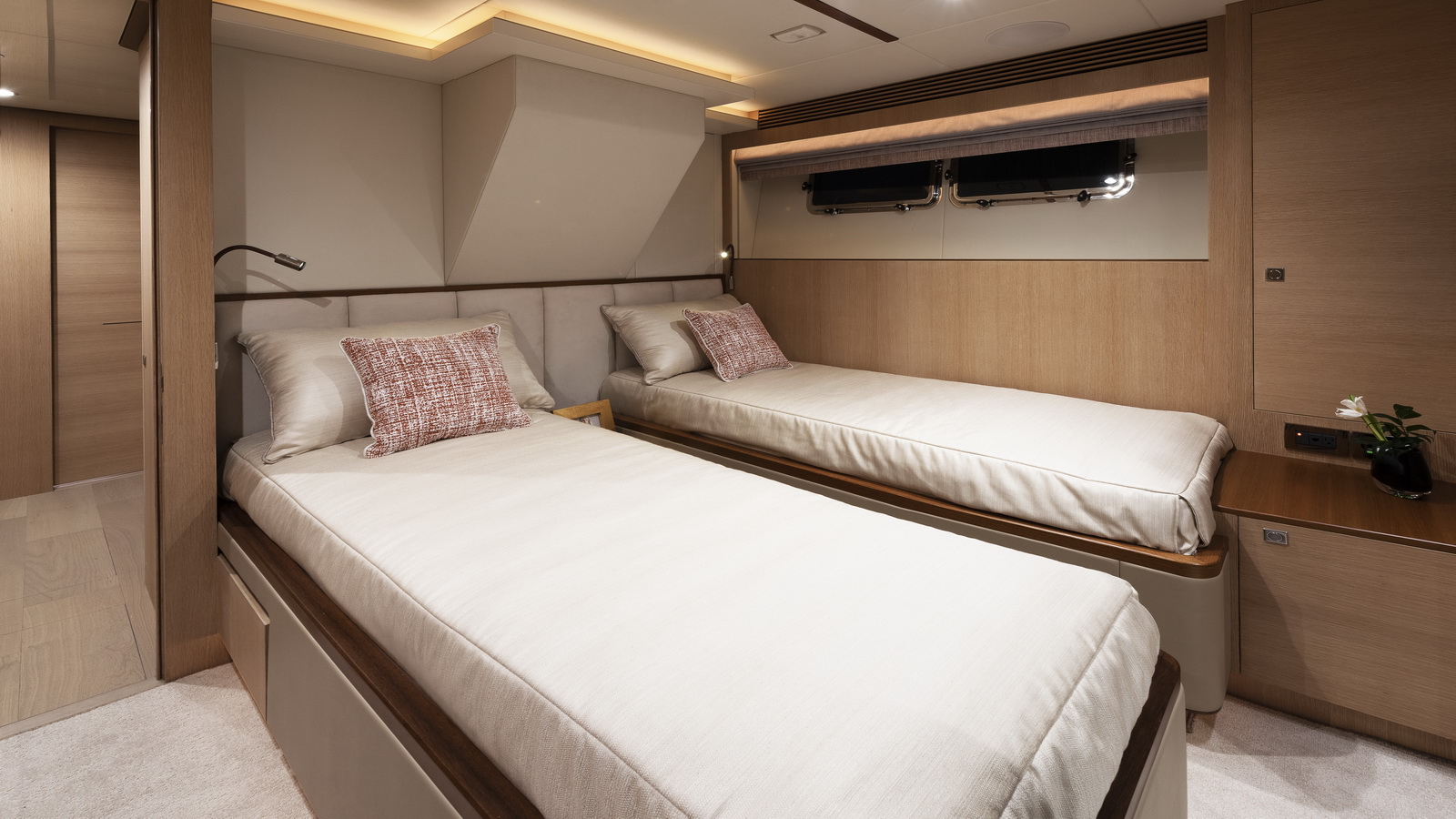 Designed for ownership without compromise, the FD80 offers four staterooms, including an on-deck master, as well as a fully equipped beach club.