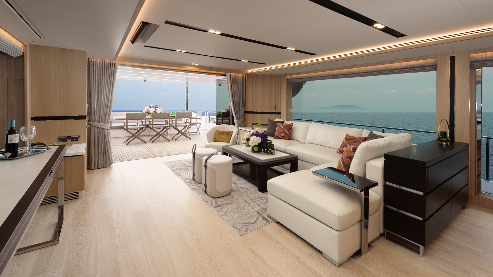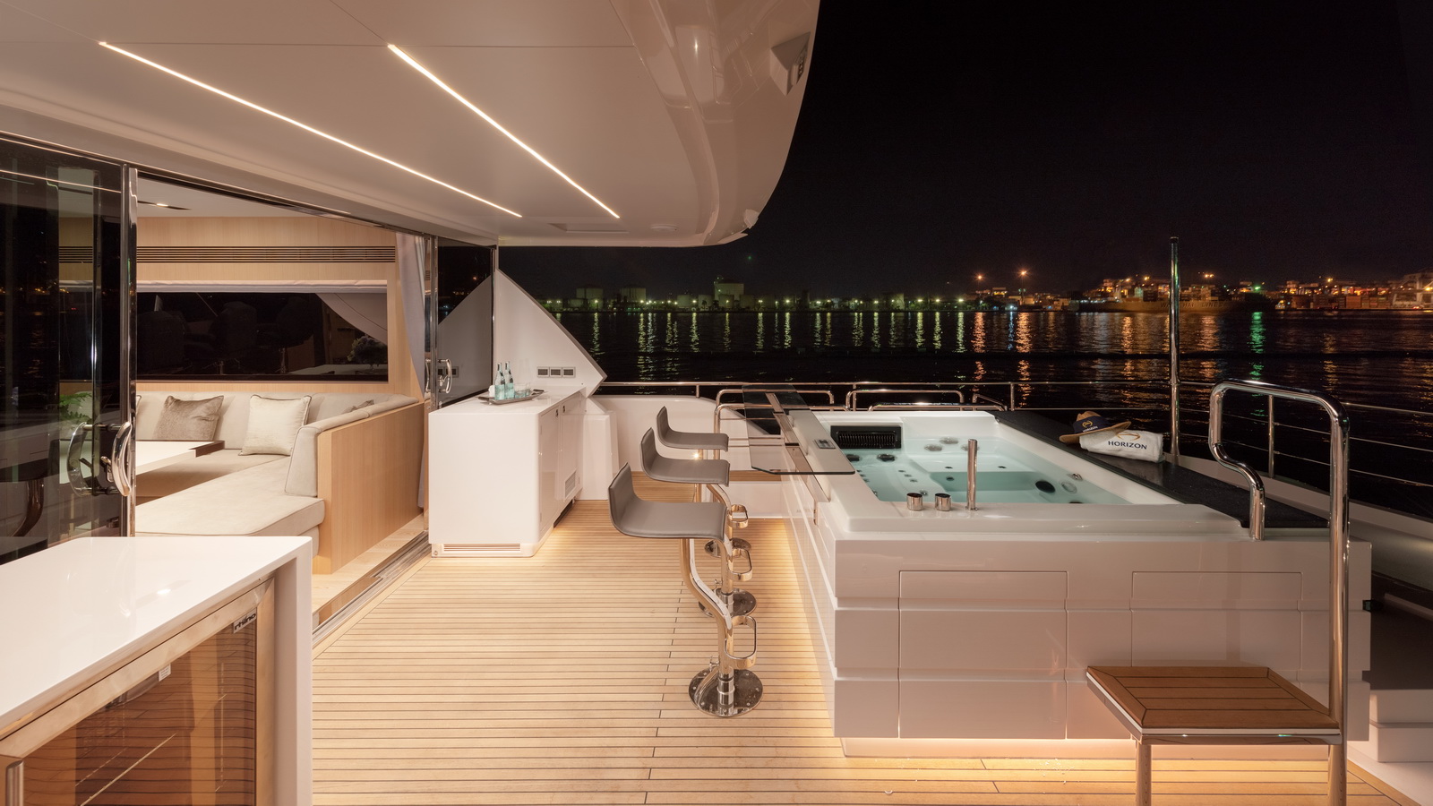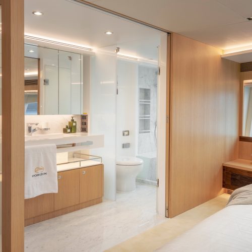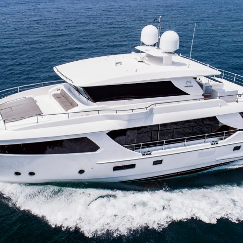 Side wingstations allow for improved visibility while docking and the bridge deck aft is spacious enough to accommodate a 16ft tender. A truly cutting-edge motoryacht with the amenities of a megayacht, the new Horizon FD80 is the ultimate yacht for owner operators.