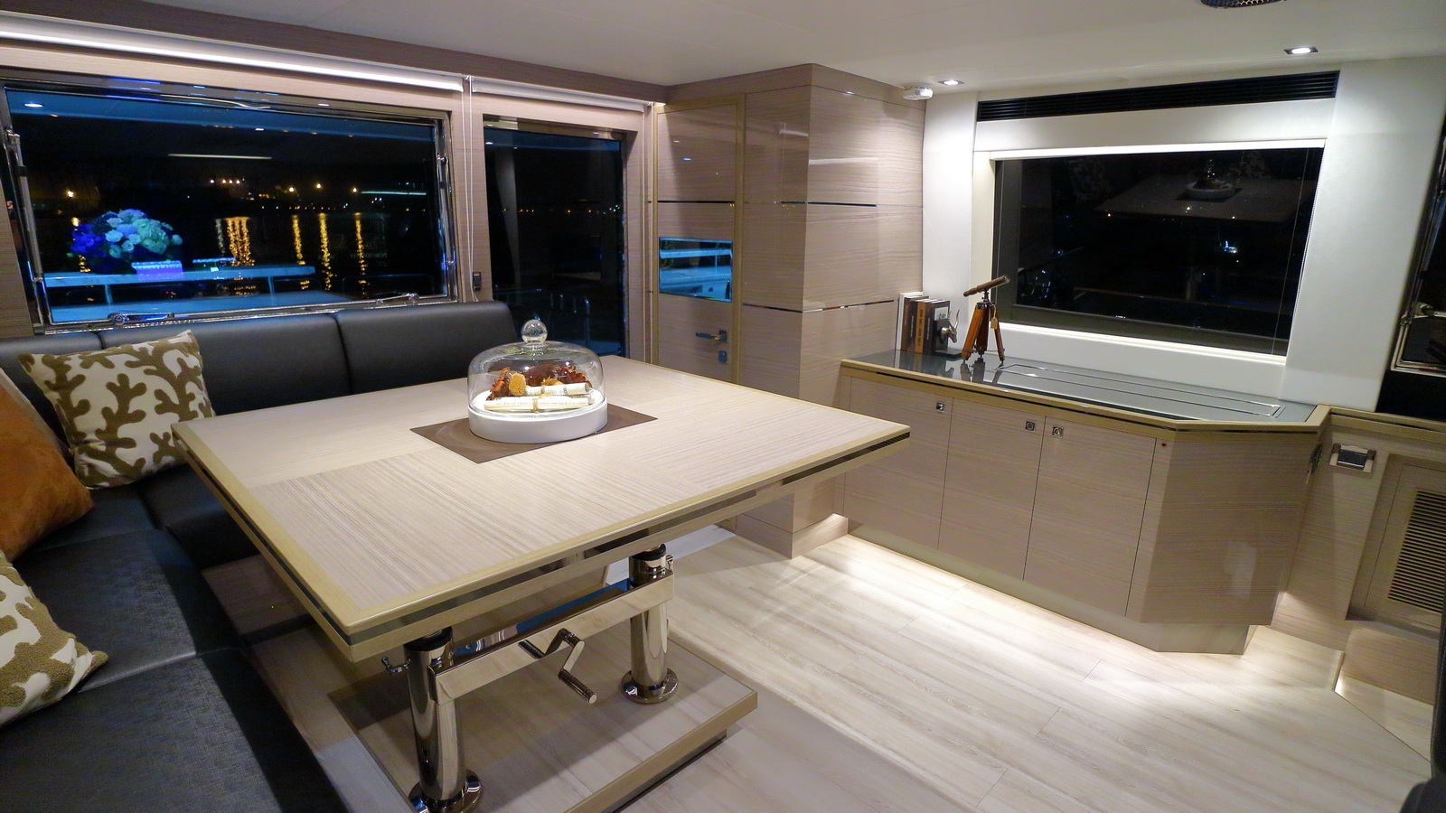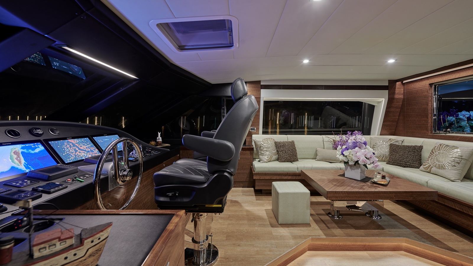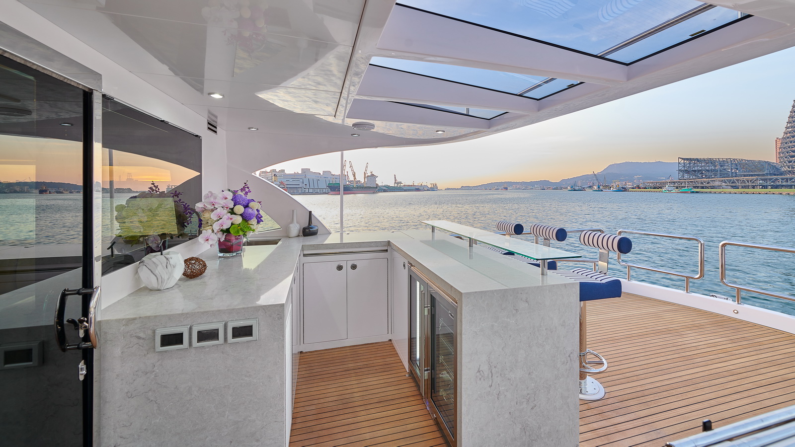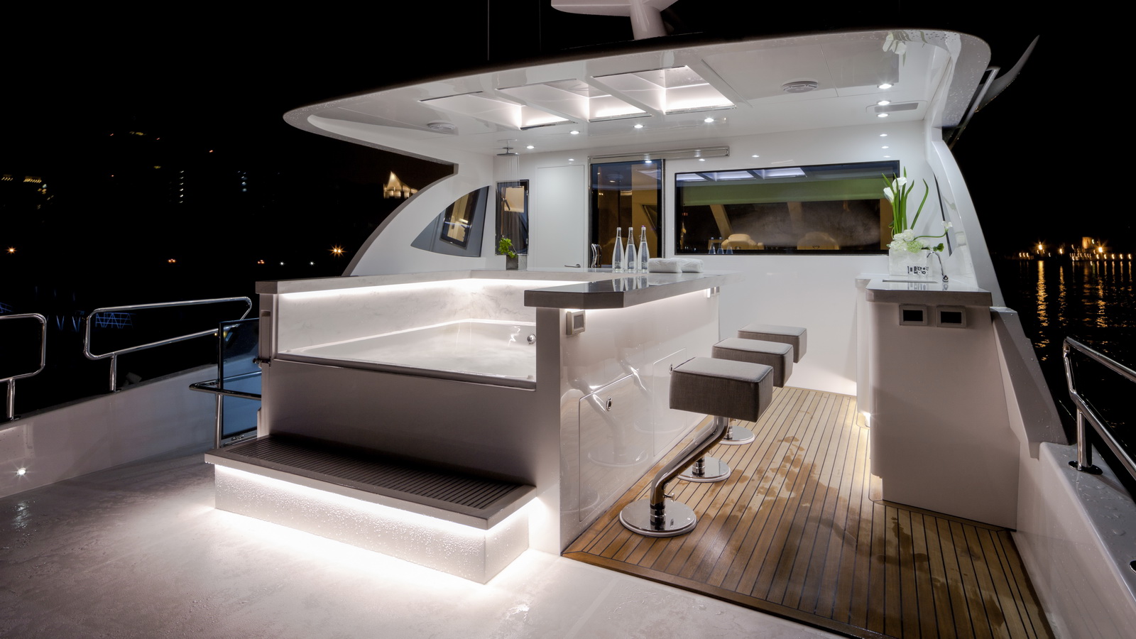 Entertaining with family and friends becomes a true pleasure with a creative foredeck seating area, exterior bar on the boat deck, and an incredible aft deck for luxurious, shaded relaxation.